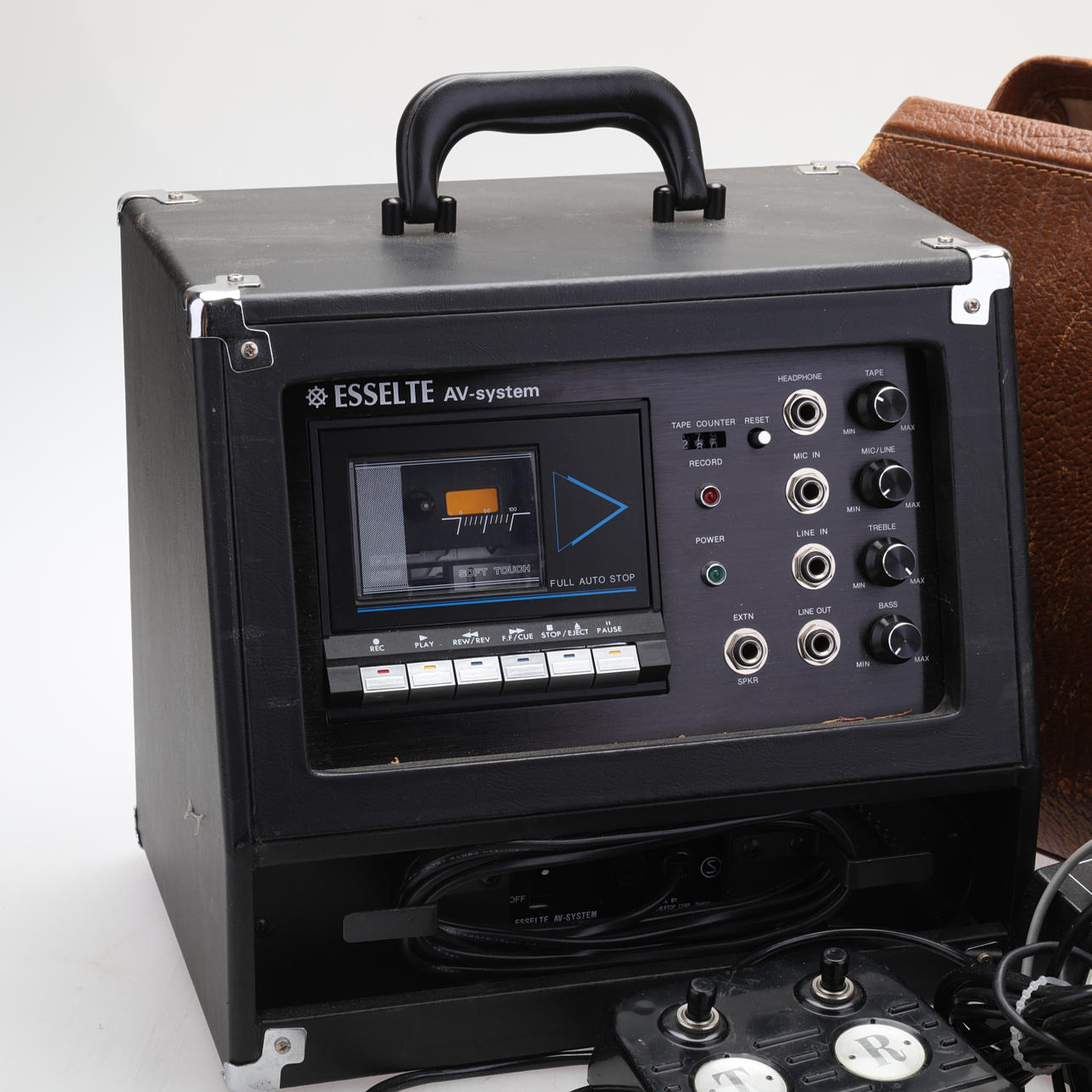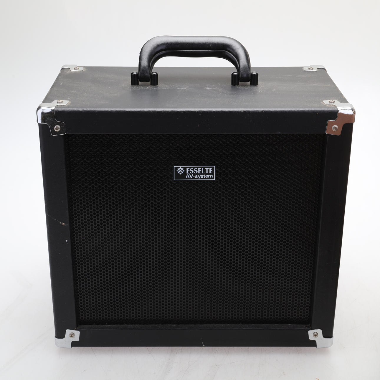 Sistema AV portátil Esselte, número de serie: 95071530. Maletín con micrófono, cables y 2 mandos diferentes, uno de ellos ELKA.