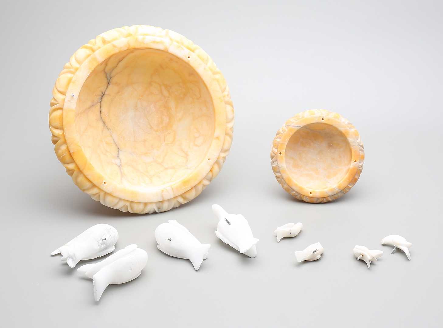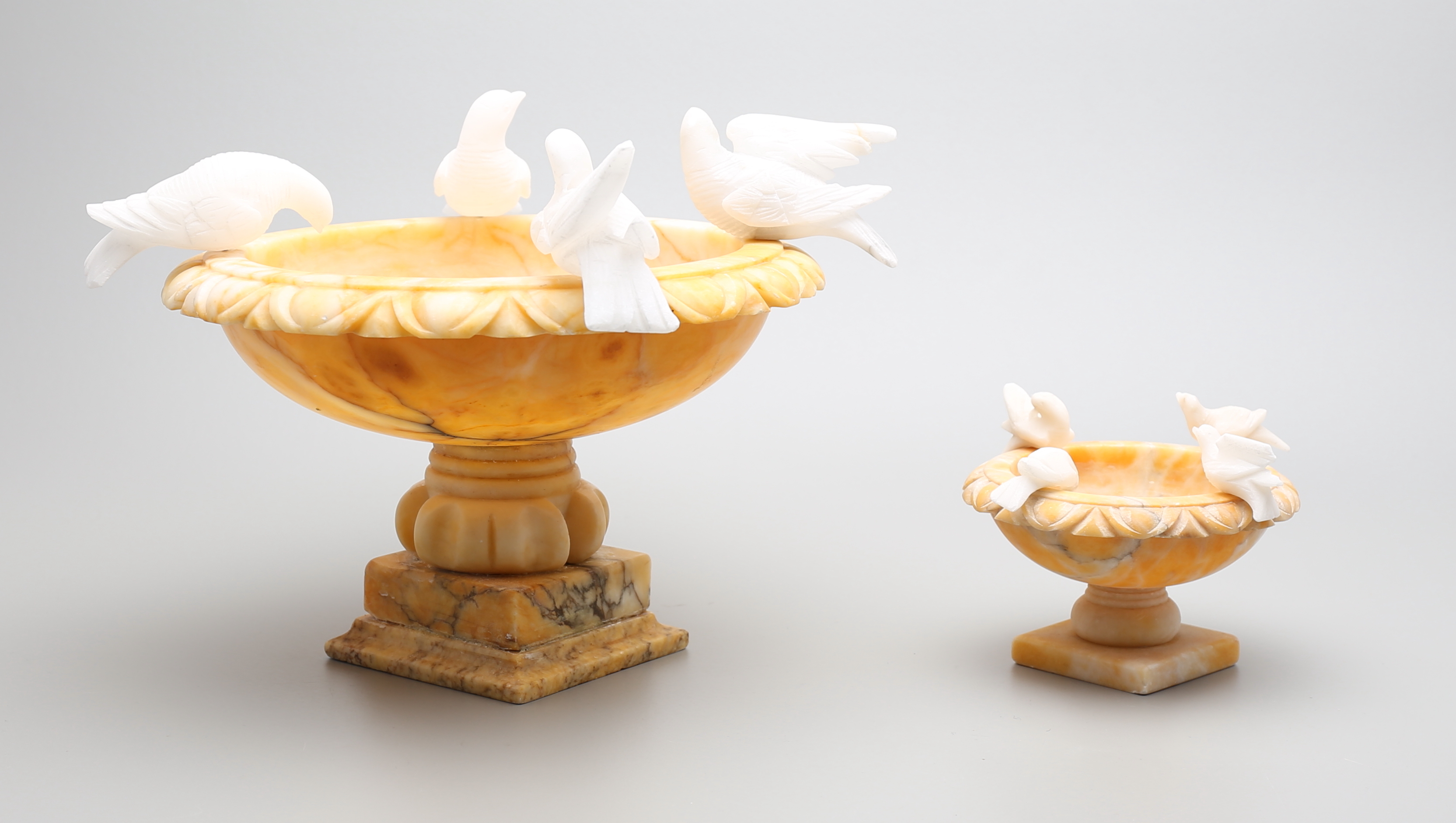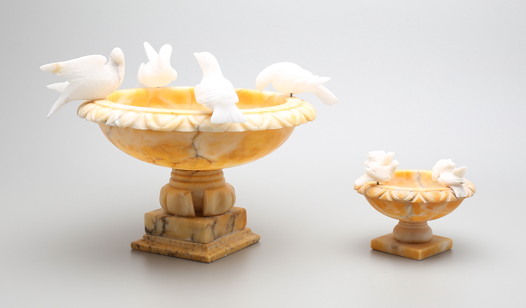 140596. BAÑERA PARA PÁJAROS, 2 piezas, década de 1900.