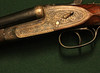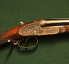 Número de fabricación: AM95743 Longitud del cañón: 70 cm Cerraduras laterales grabadas desmontables, caja grabada, cañones grabados, culata inglesa recta, gatillos dobles, eyectores, seguridad automática, óvalo de monograma empotrado sin grabar en la culata, tirantes de correa.