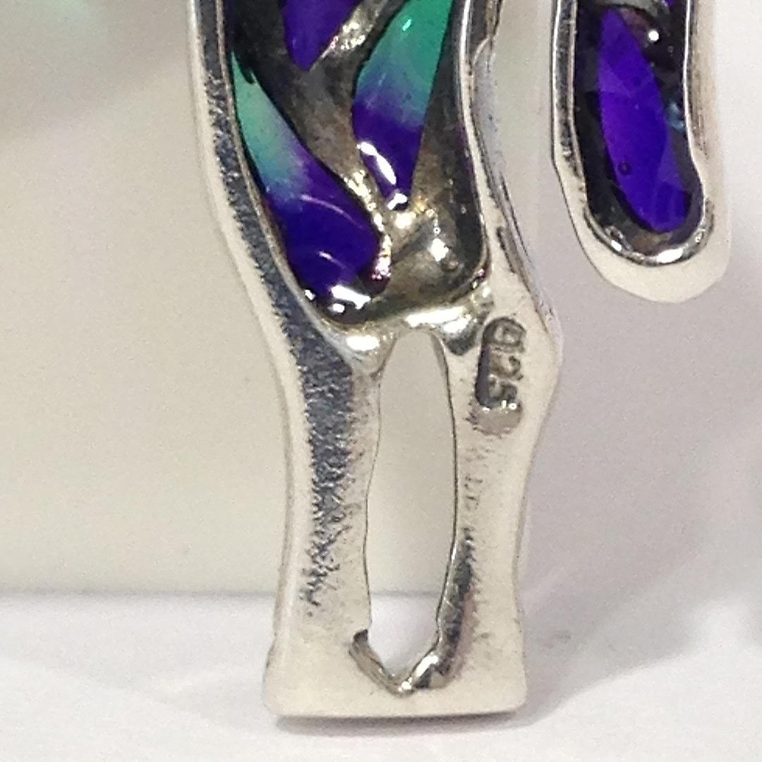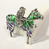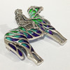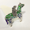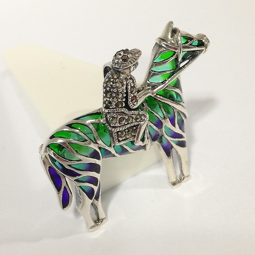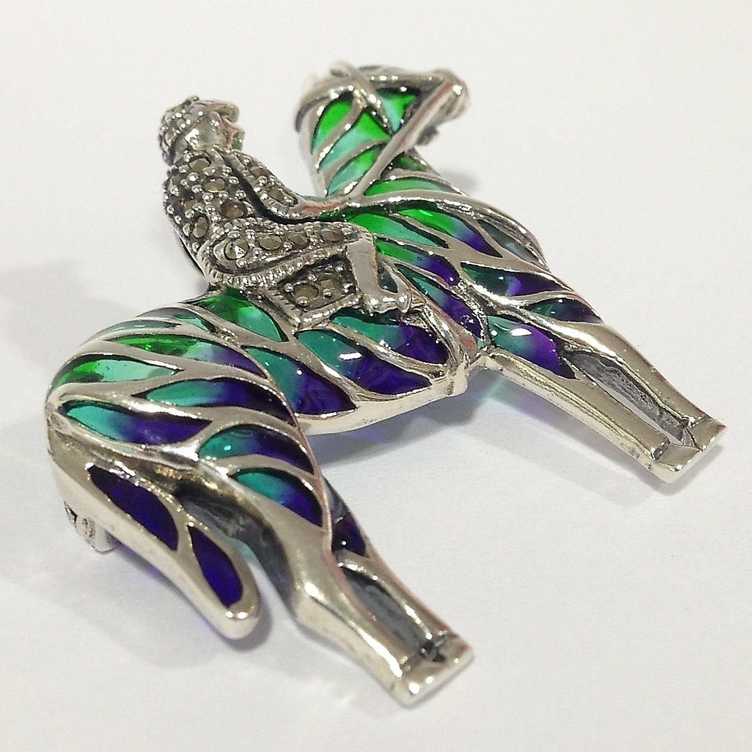 El caballo de este broche/colgante está relleno con un esmalte de dos colores. El sillín está engastado con 2 piedras redondas de marcasita.
