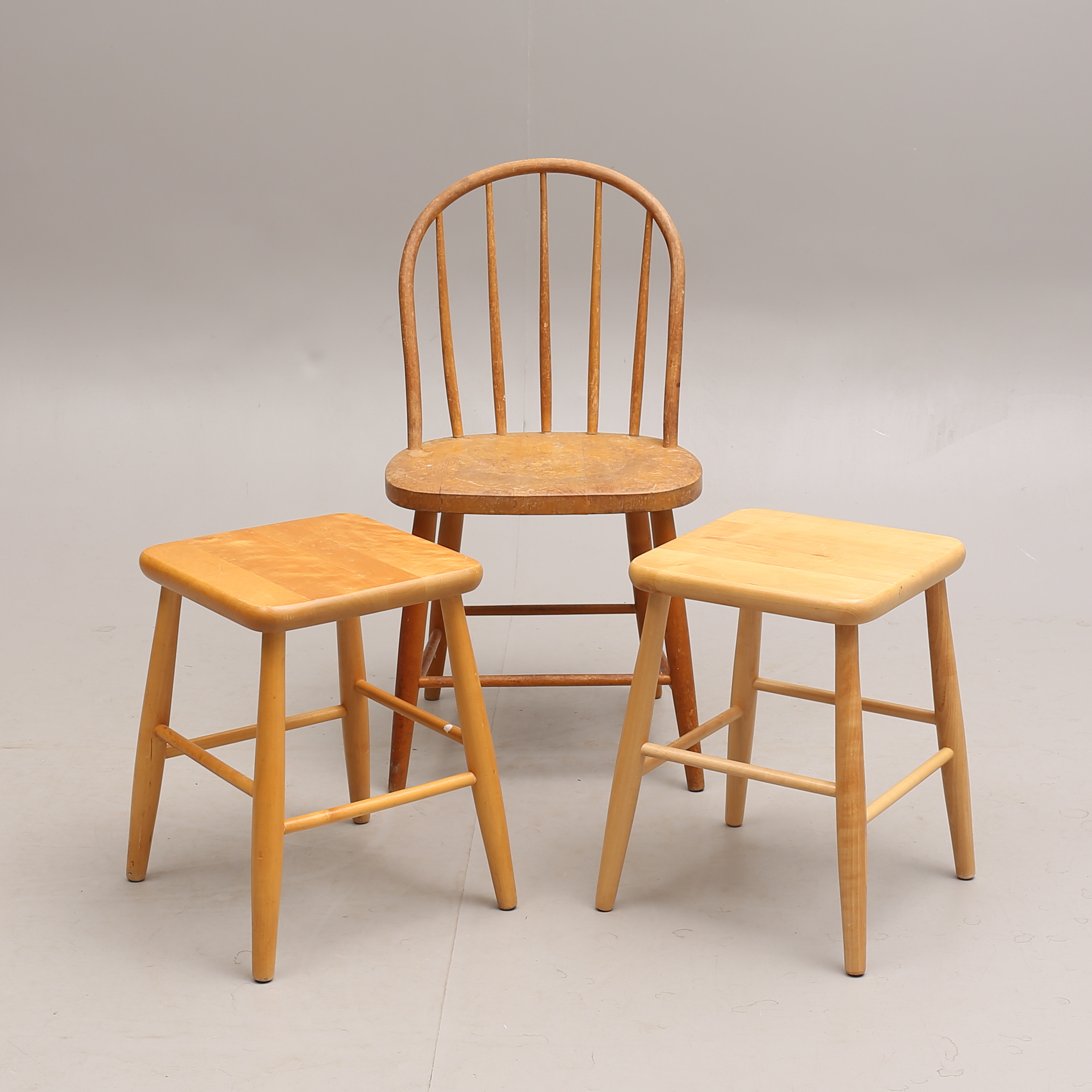 1435626. 2 Taburetes de madera y SILLA.
