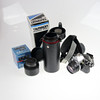 Cuerpo de cámara, Pentax ME Super, con lente de 50 mm. Lente Tamron 80-210 mm. Lente Teleplus Macro MC7.