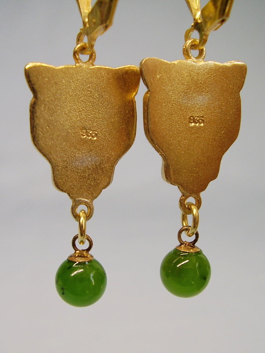PENDIENTES CABEZA DE PANTERA CON JADE PLATA 935 ANTIGUA.