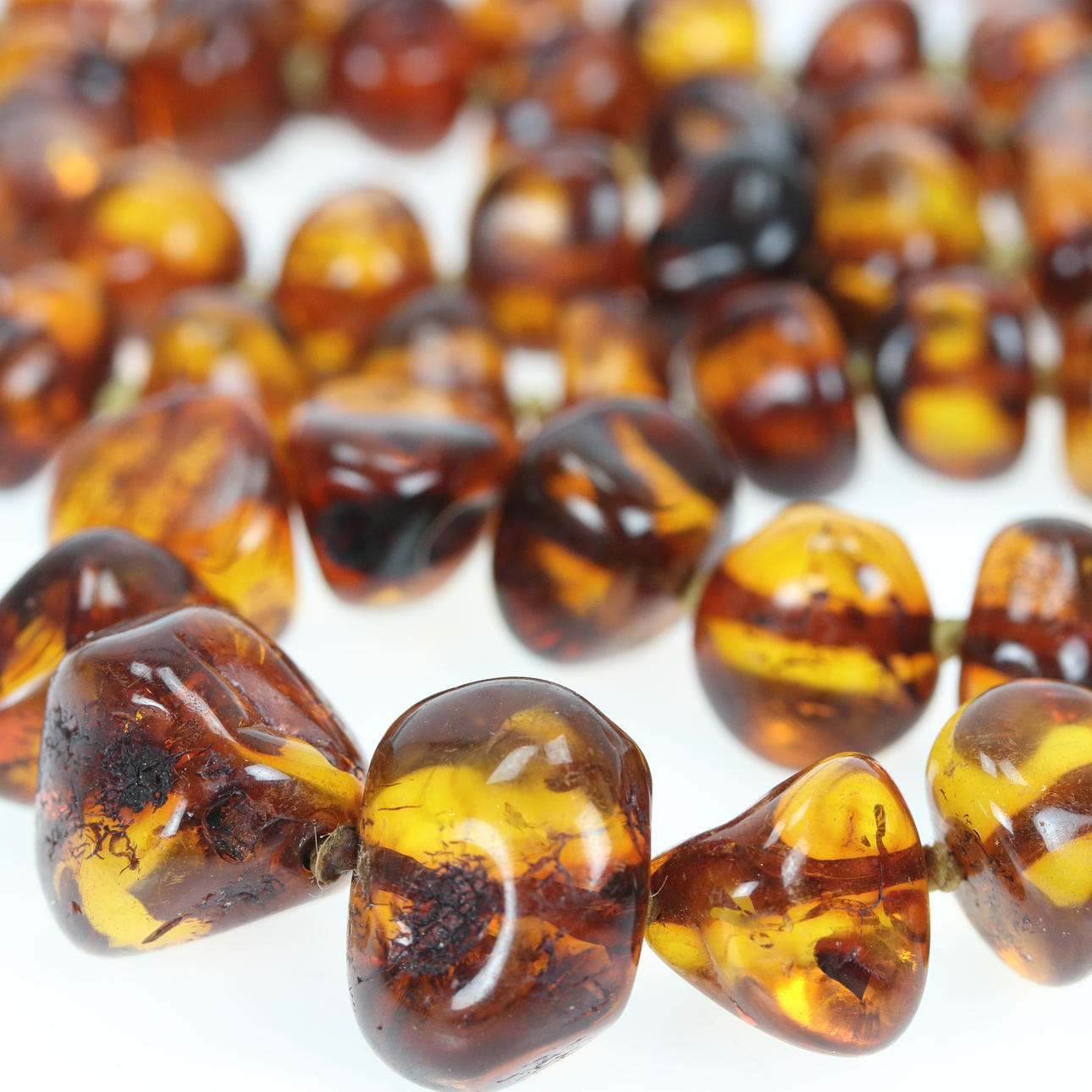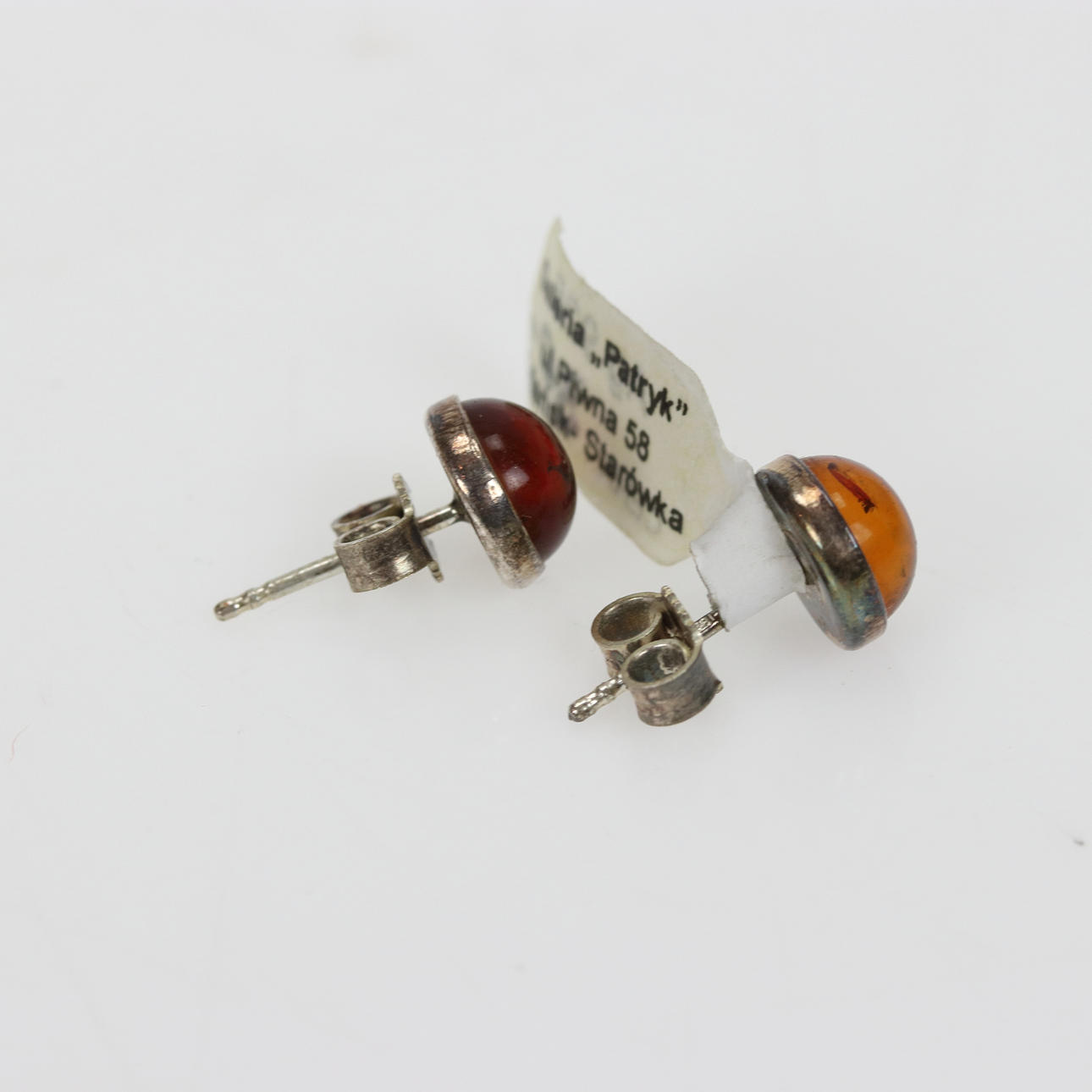 1463478. COLLAR y ARETES, ámbar pulido, plata.