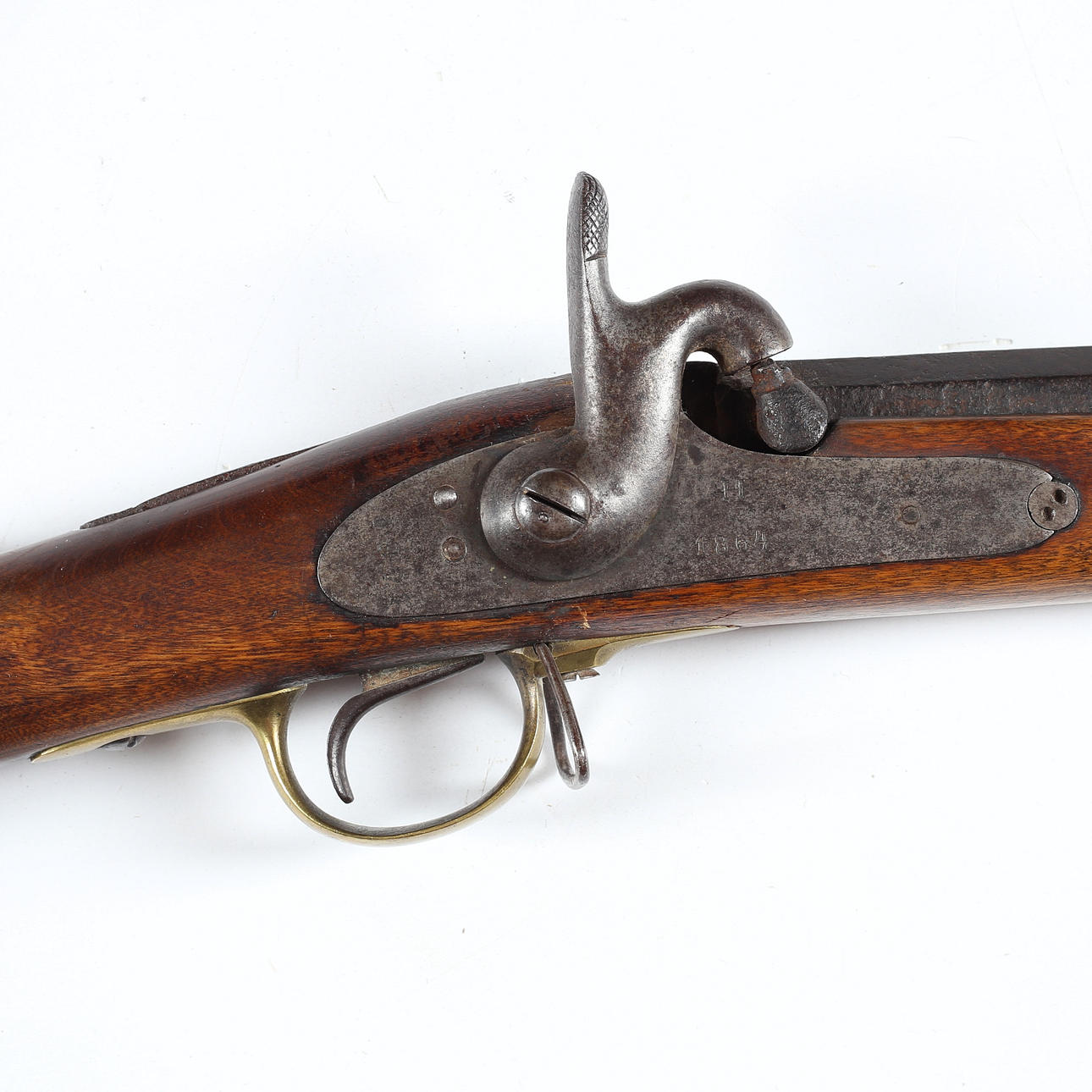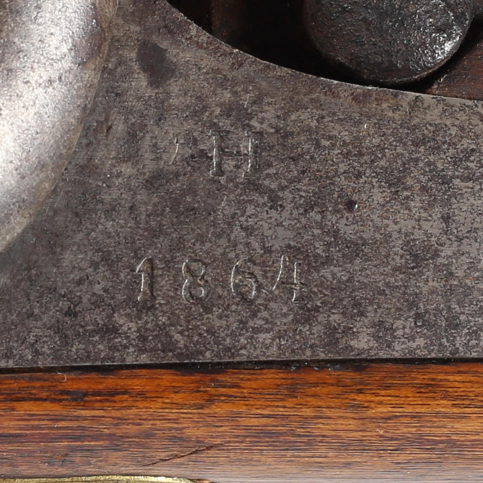 Cerradura marcada Husqvarna 1864, numerada 1811. Convertido de bloqueo de pedernal a bloqueo de impacto.