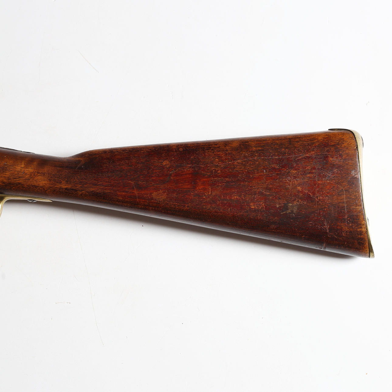 Desgaste, mecánicamente funcional, falta la barra de carga, marcas en la madera a lo largo de la culata.