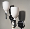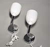 Soportes en metal cromado, pantallas en plástico duro blanco. Altura 30cm.