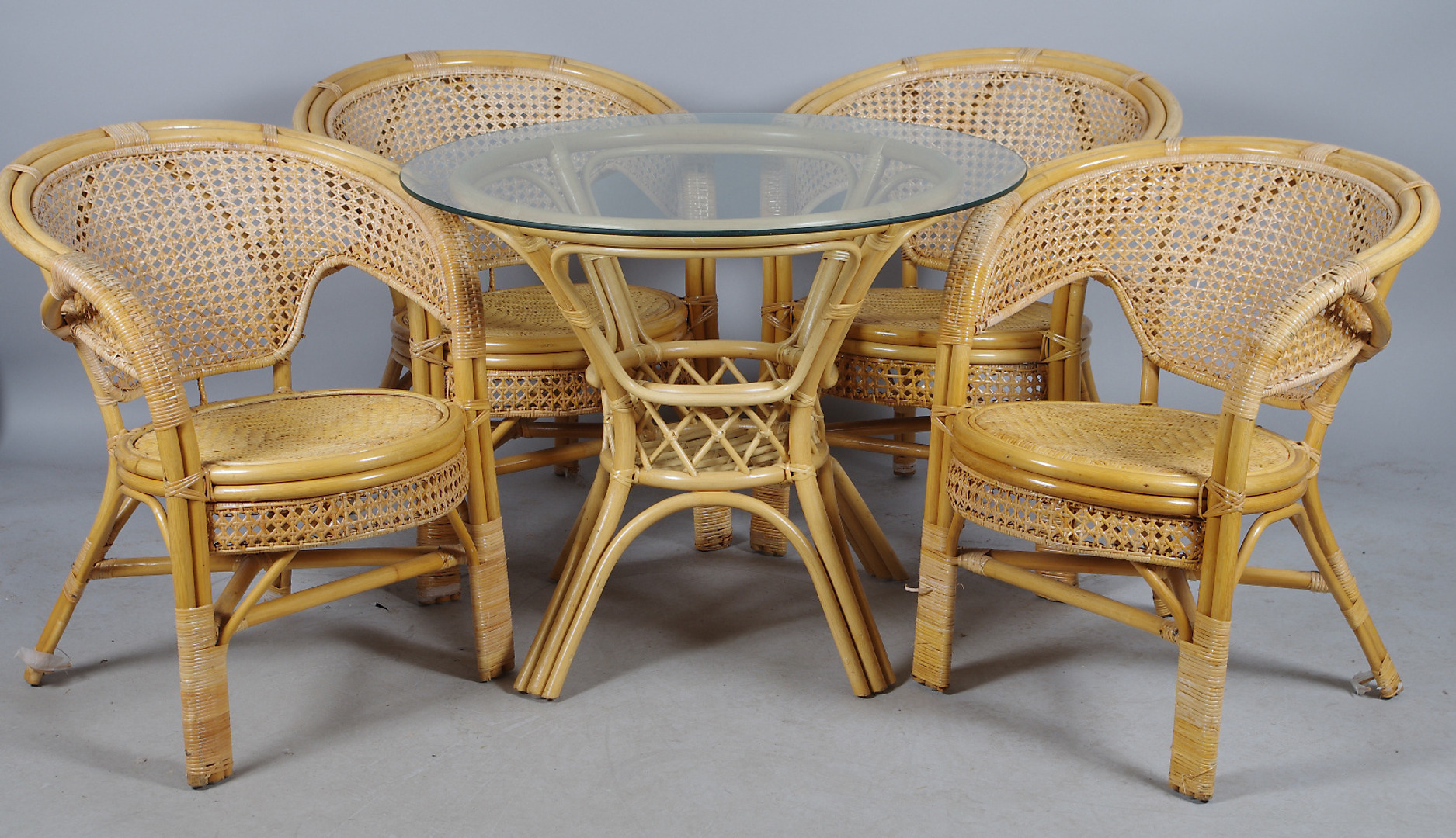 148935. GRUPO BALCÓN, ratán / vidrio.