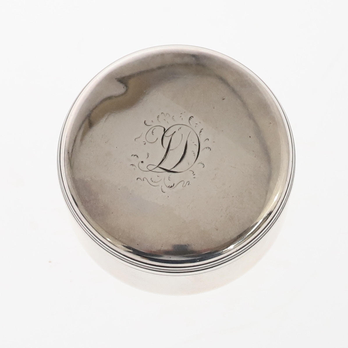 liso con borde de caña e interior dorado, marca de Moscú estampada, marca del fabricante CB (no identificado), marca 84 kokoshnik, marca de maestros de ensayo para Dimitry Ilyich Tverskoy 1837, 4,5 cm de diámetro, 52 gramos.