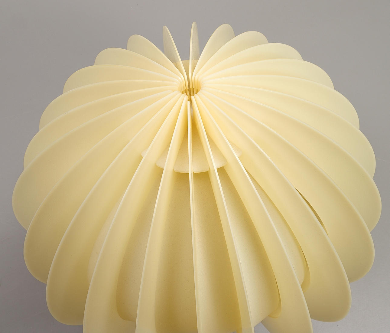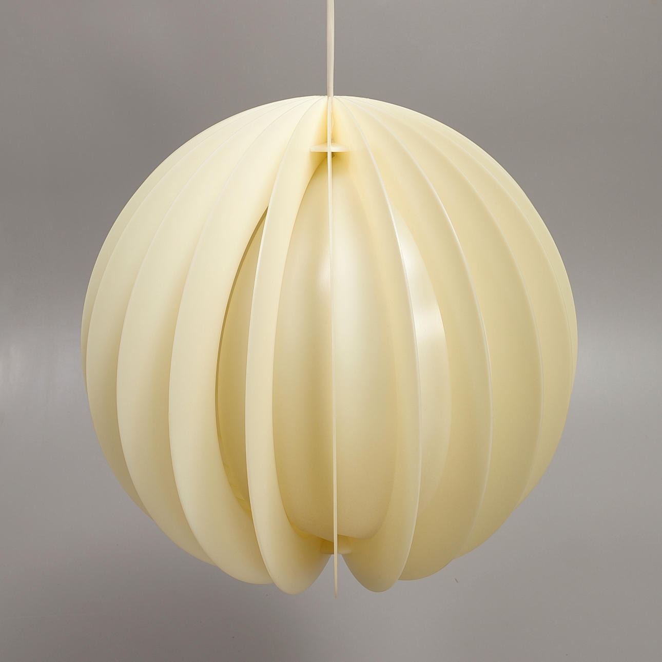 Con listones, probablemente IKEA, años 60, diámetro 40 cm, soporte incluido para montar como lámpara de mesa.
