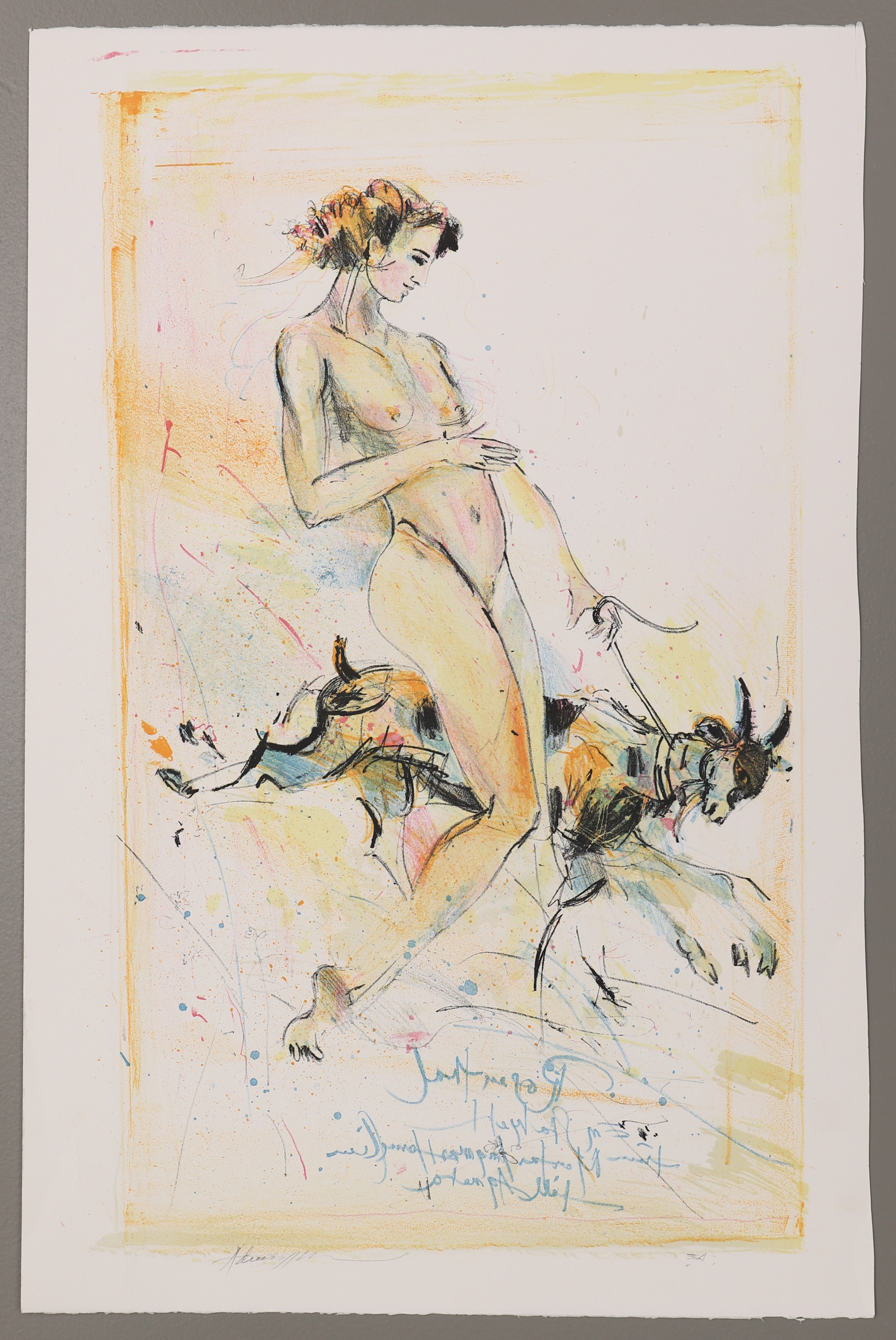 1515722. BO ÅKE ADAMSSON. Mujer con cabra, litografía en color sin EA, firmada.