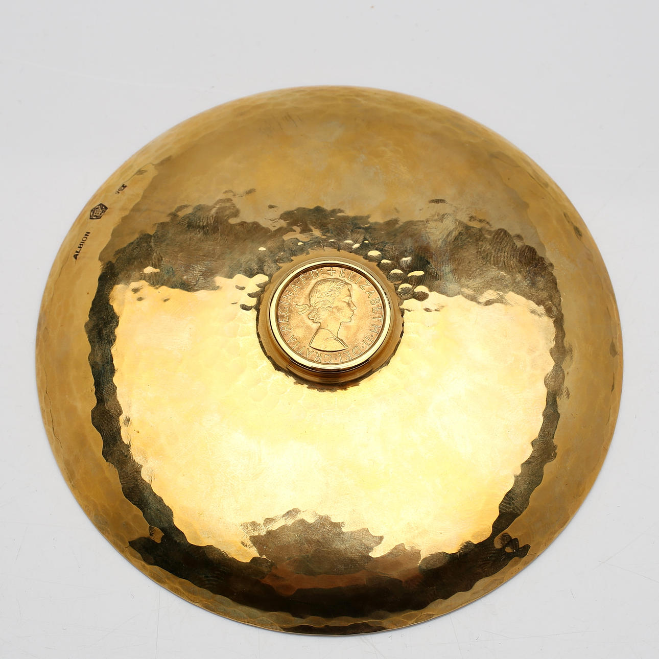 Cuenco en oro de 9K marcado Albion. Moneda de oro de 22 quilates, Inglaterra, 1963, peso 7,9 g.