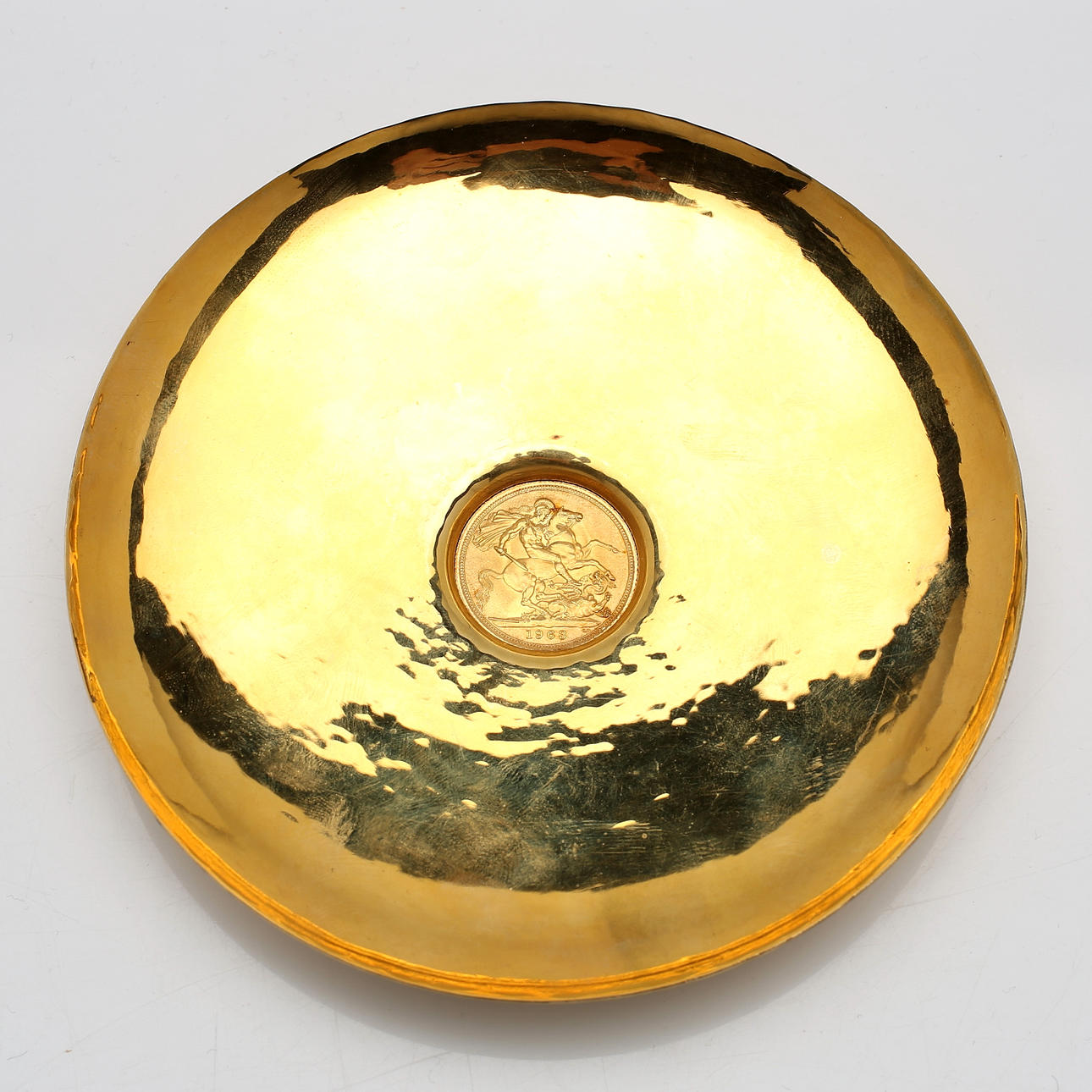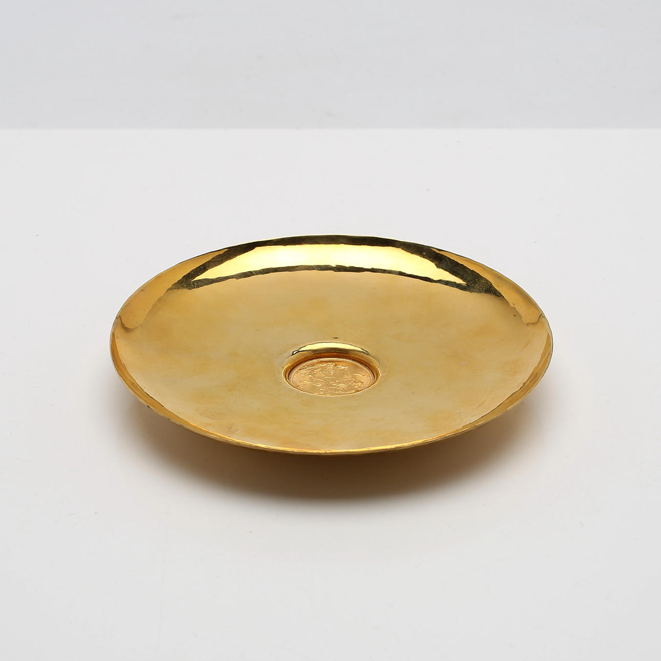 1518676. CUENCO, con moneda incrustada, oro 9K.