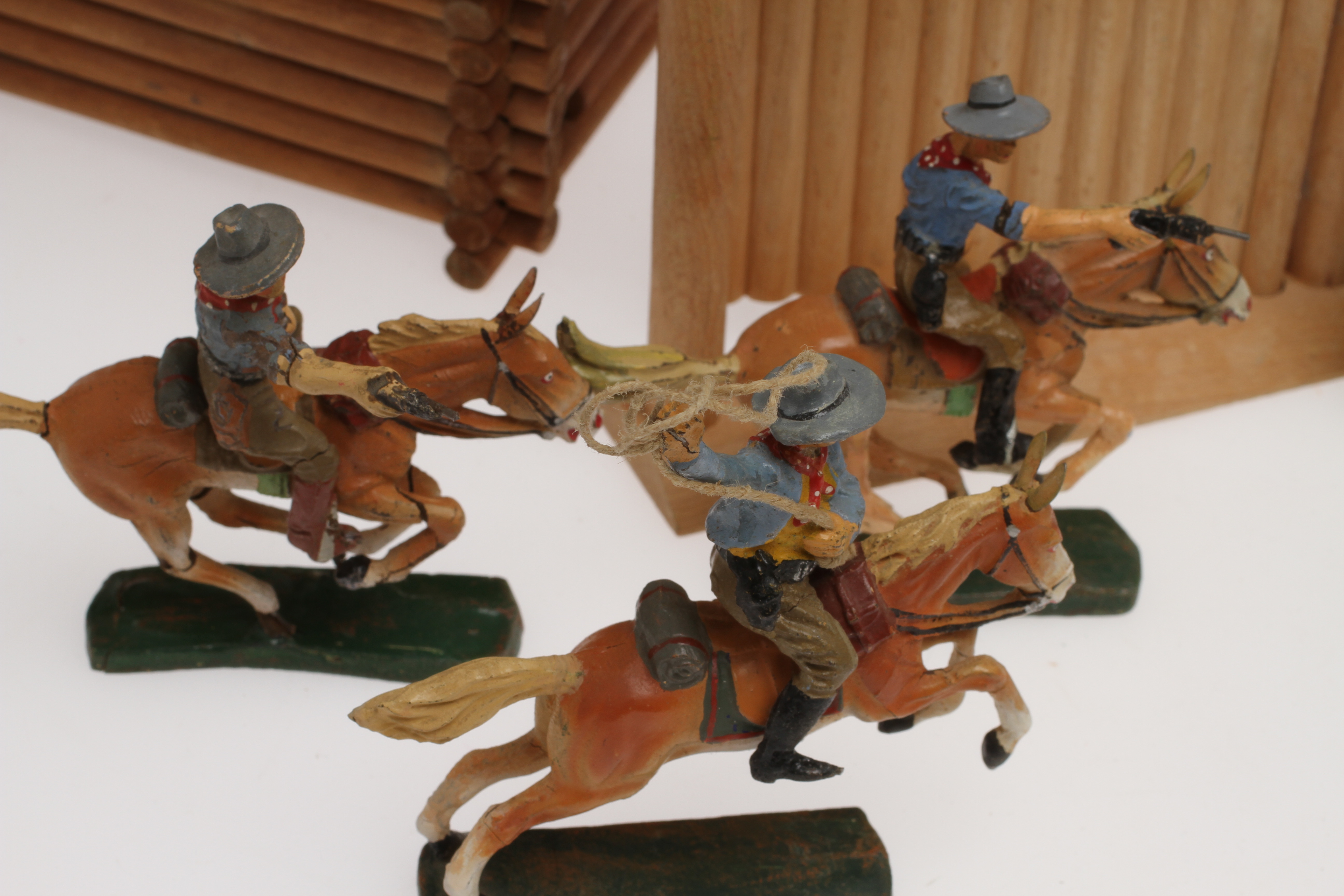 15221. ELASTOLIN WESTERN, EDIFICIOS; PALLISADES, TIENDAS Y JINETES.
