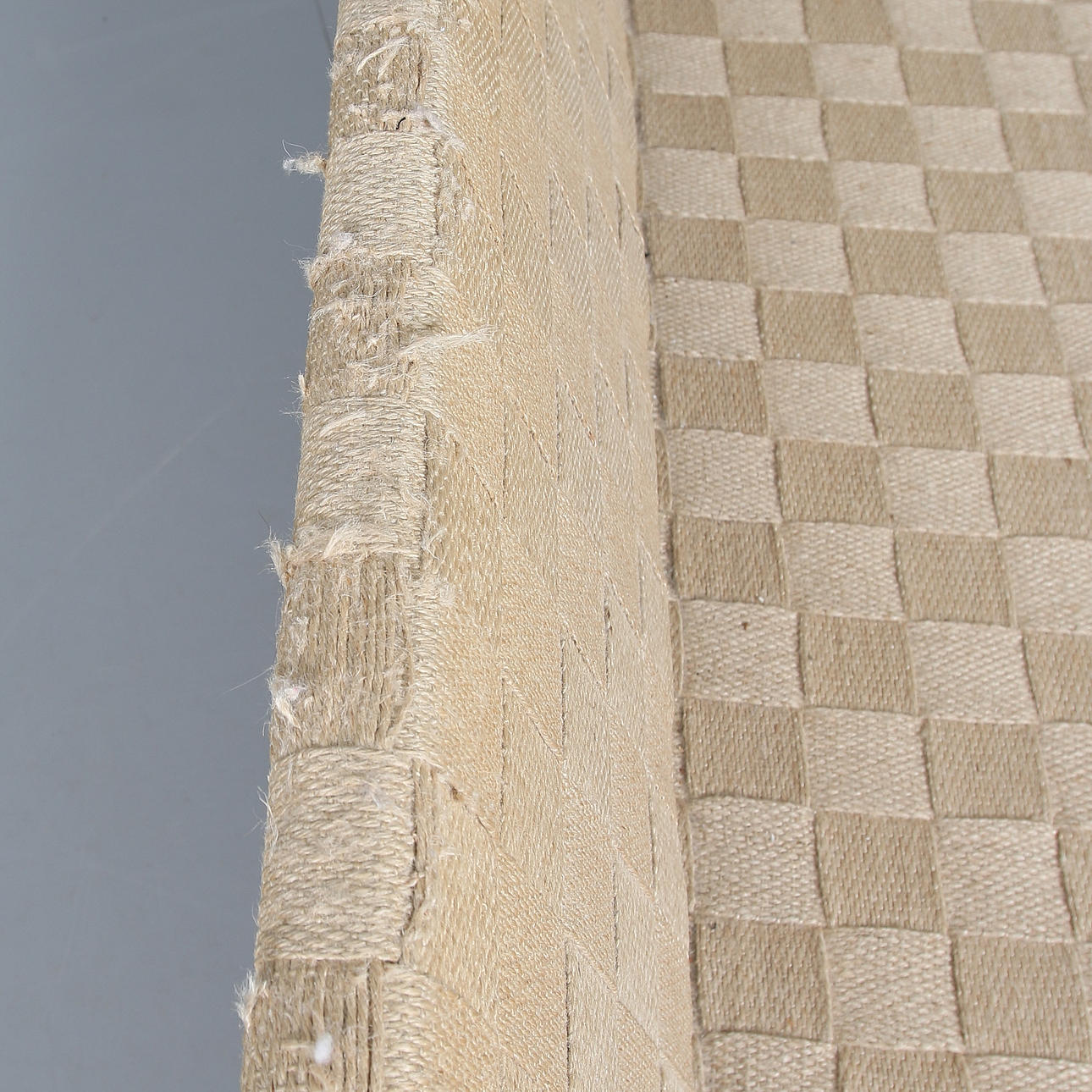 Llevar el cinturón del sillín en el respaldo dañado. Cojines con manchas.