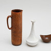Jarra, jarrón, cuenco y 2 miniaturas. Esmaltado en varios tonos marrones y blancos. Altura 3,5-24 cm.