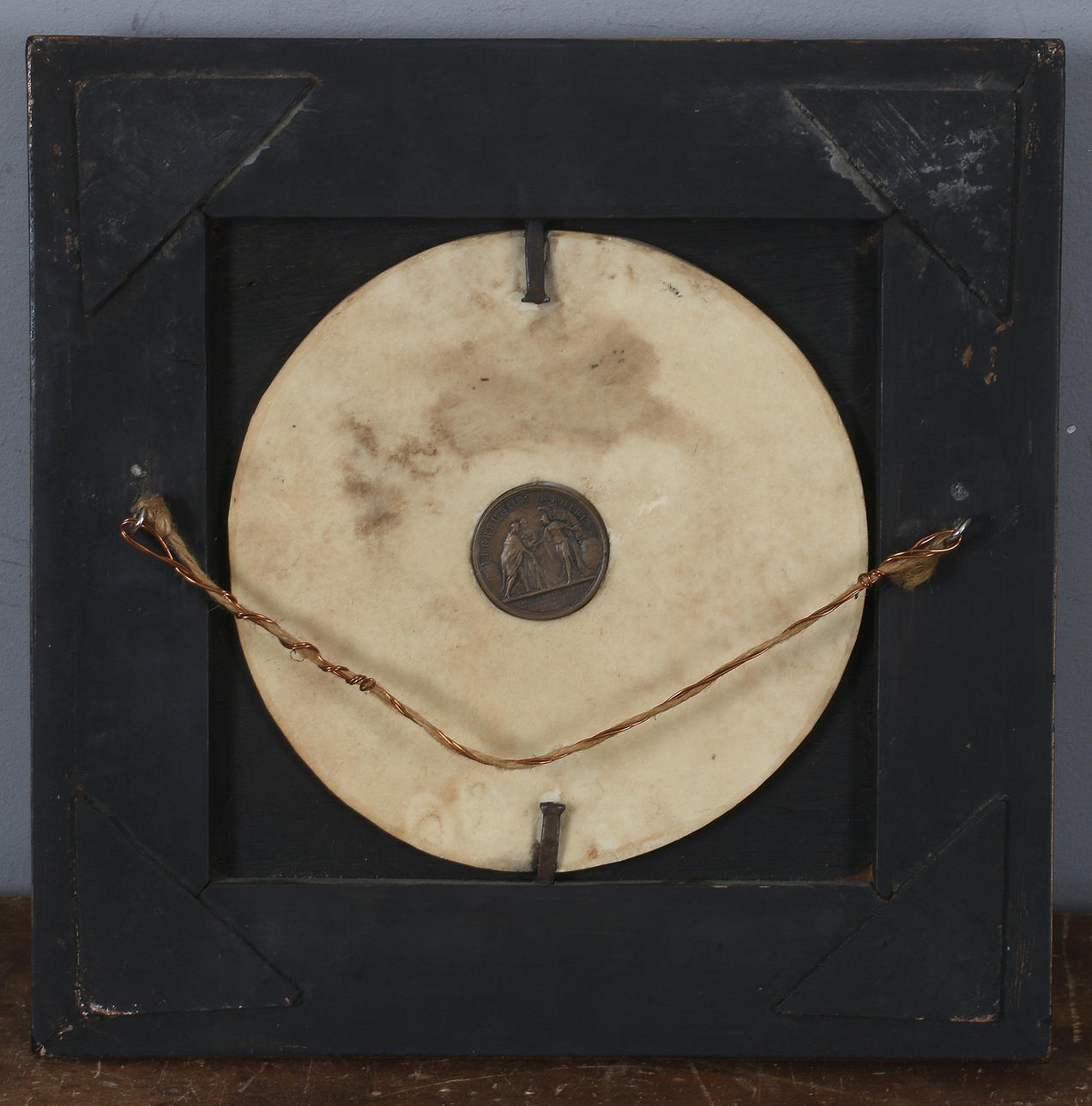 Reverso con moneda insertada con la inscripción "Perfugium Regibus". Dimensiones de la imagen aprox. 17cm.