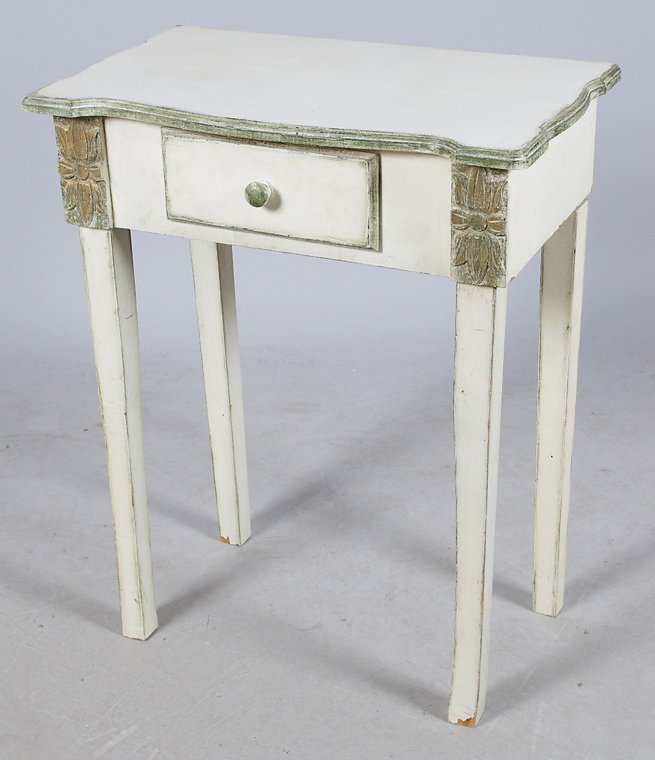 157012. MESA CON CAJA, pintada de blanco, siglo XX.