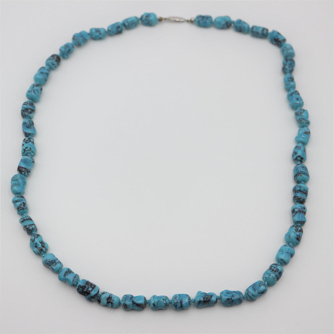 Collar de turquesas con cierre de plata 835, con punzón de plata, largo: 59 cm.