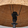 Lámpara de pie de metal ligero con pantalla de mimbre.