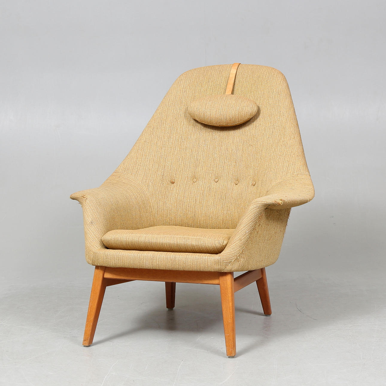 Estructura de patas de madera dura. Armazón tapizado, cojín de asiento suelto. Almohada de cuello.