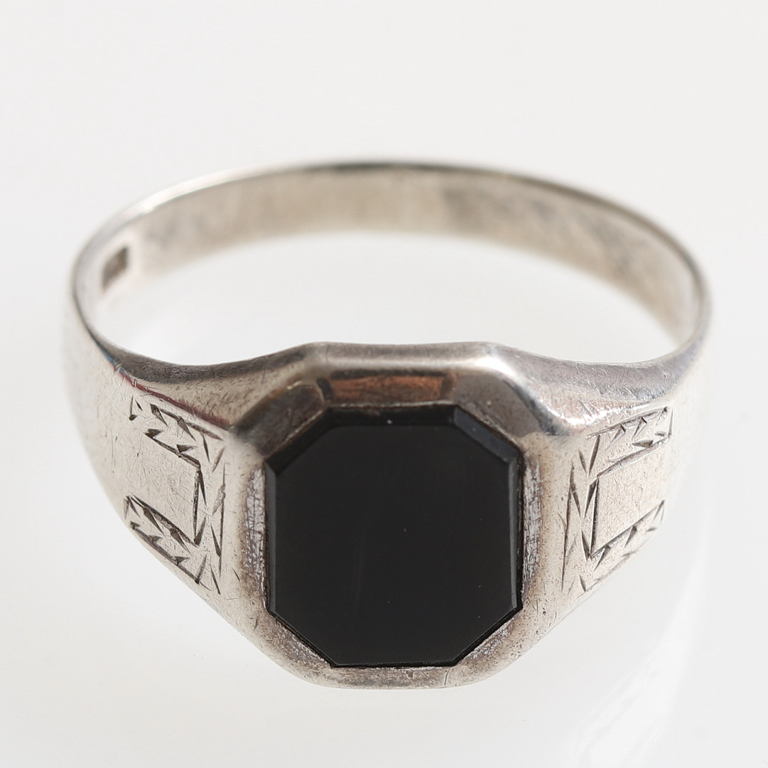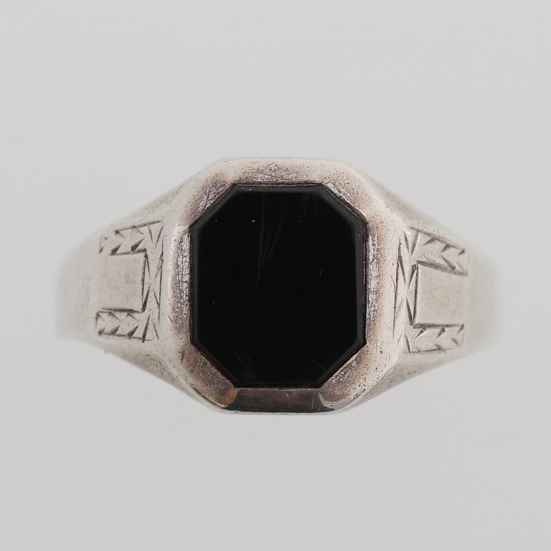 1592025. Anillo de sello, plata y onix negro.