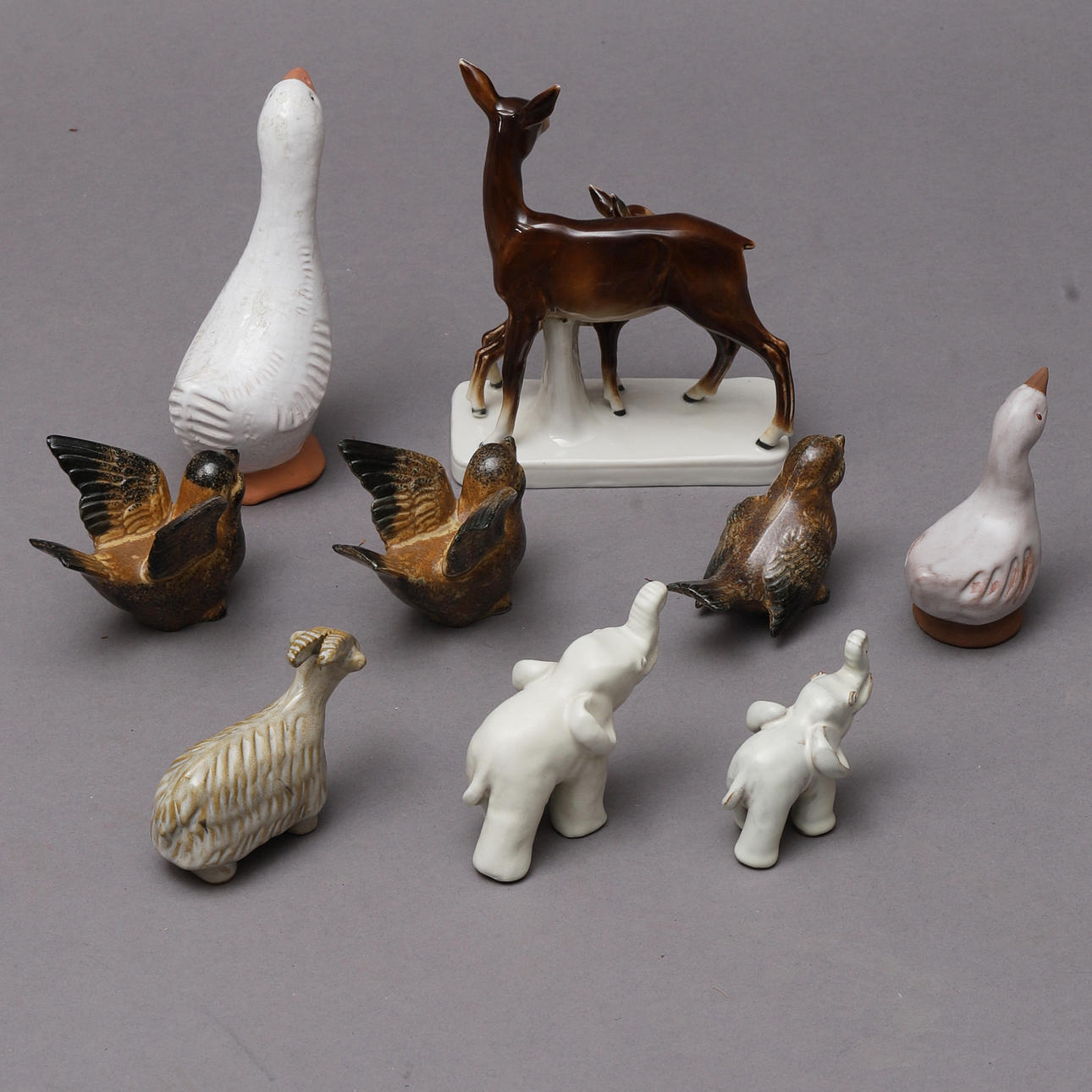 1600042. FIGURINES, 9 piezas, animales, cerámica.