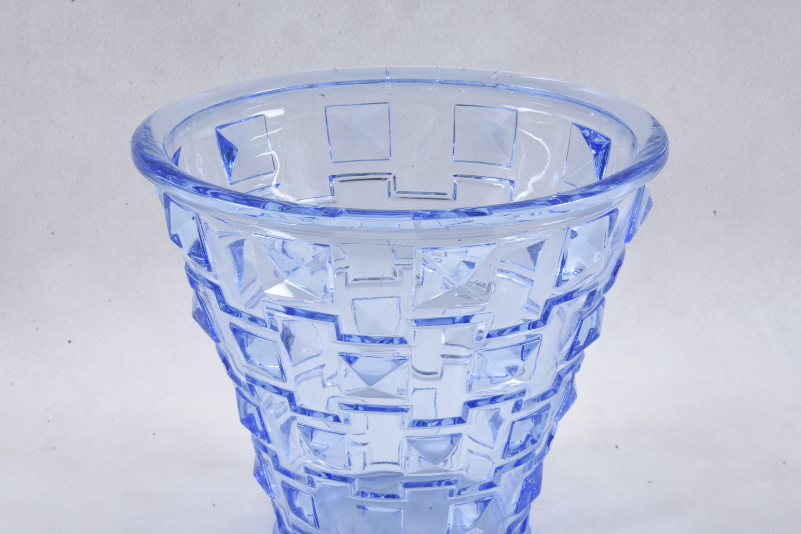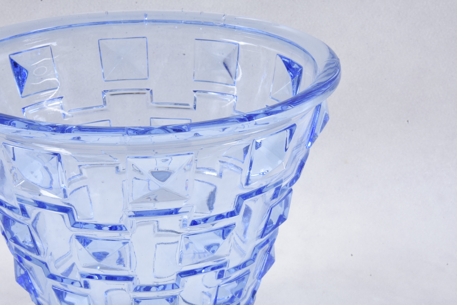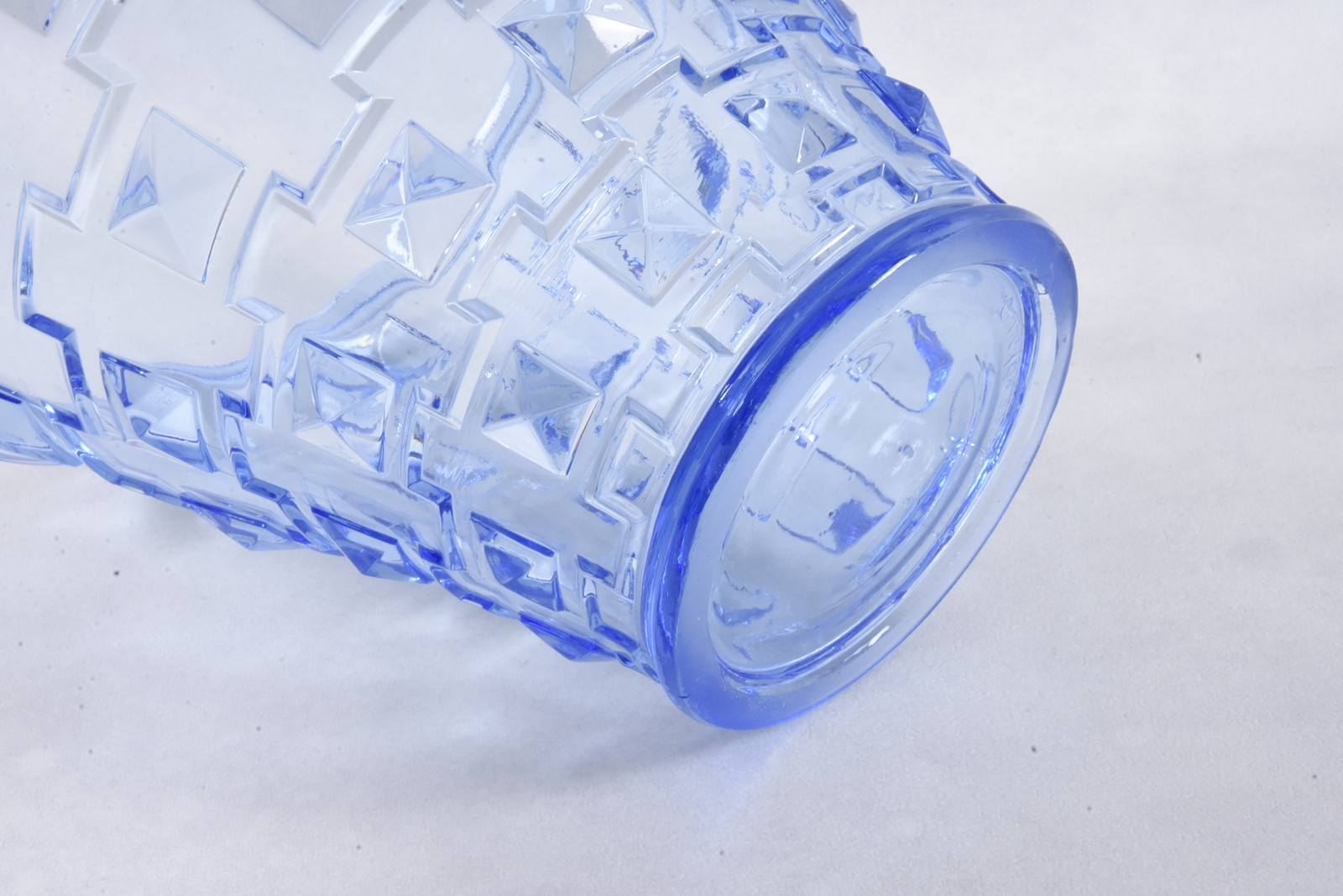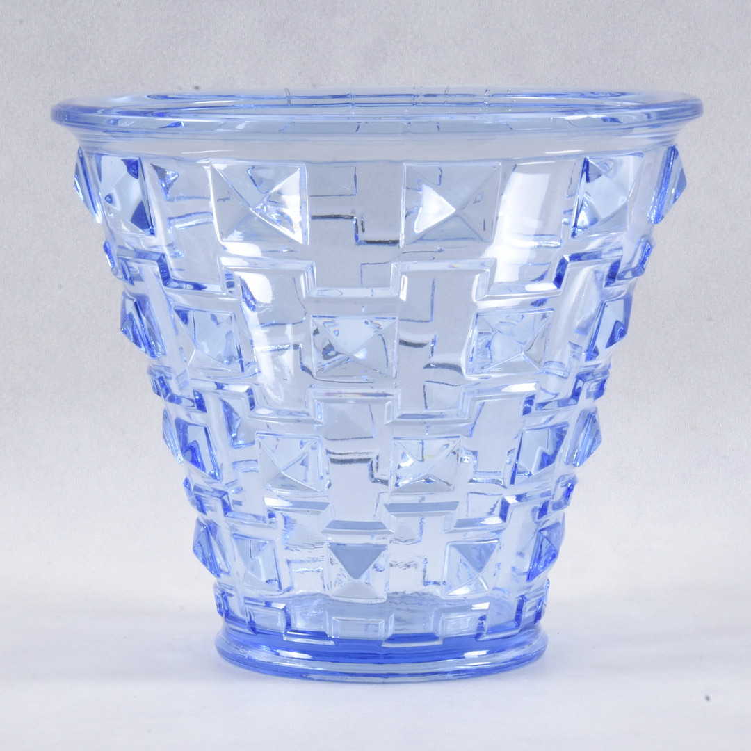 1604366. SIMON GATE. Florero, vidrio prensado azul, 1930.