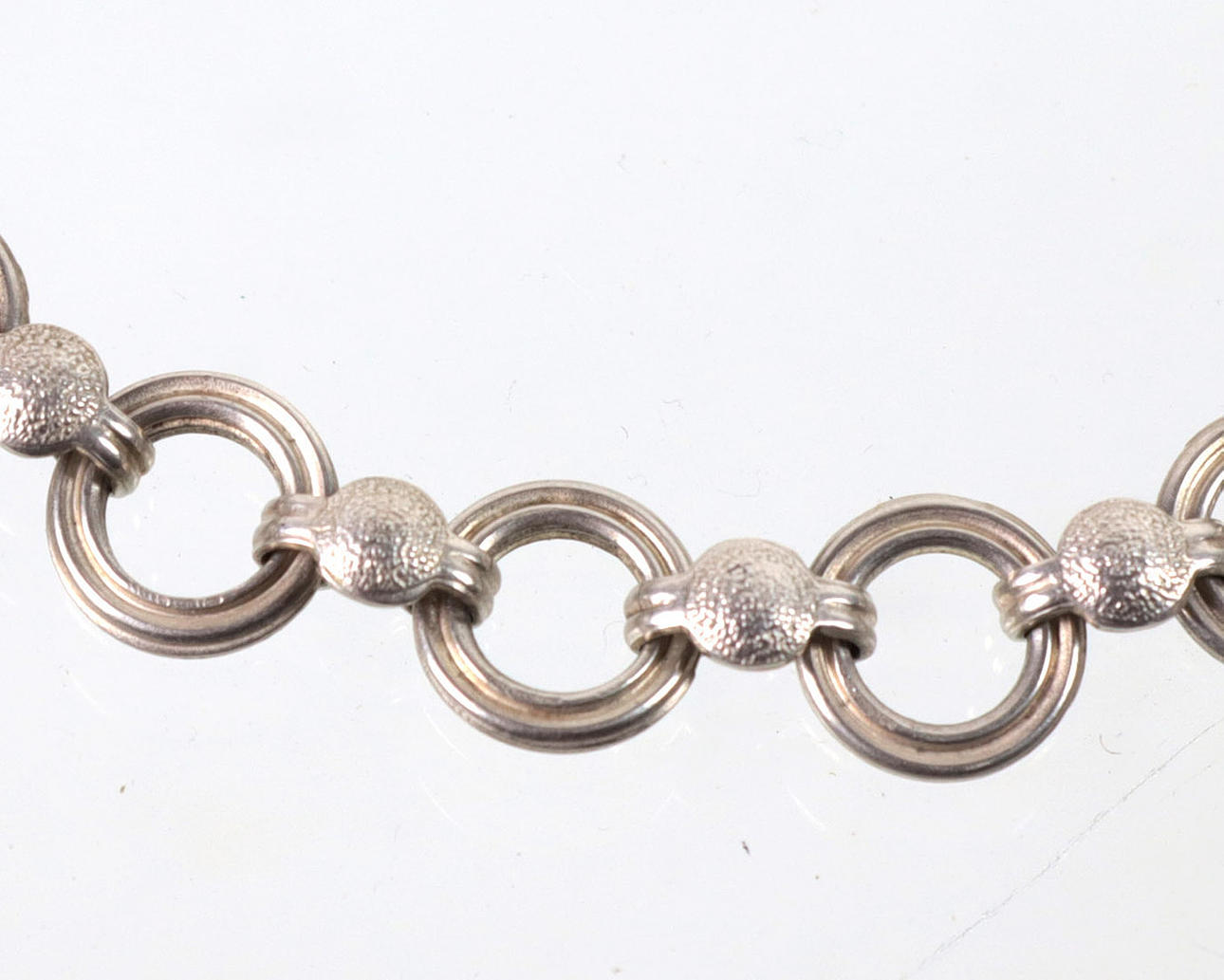 Pulsera de plata maciza, punzonada en plata 825, largo 19 cm, ancho 1 cm, peso 10 gramos.
