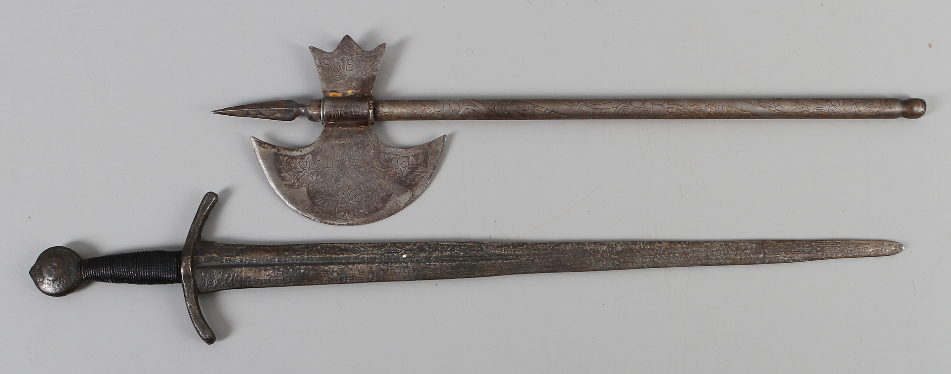 161730. ARMA DE DECORACIÓN, 2 piezas, espada y hacha.