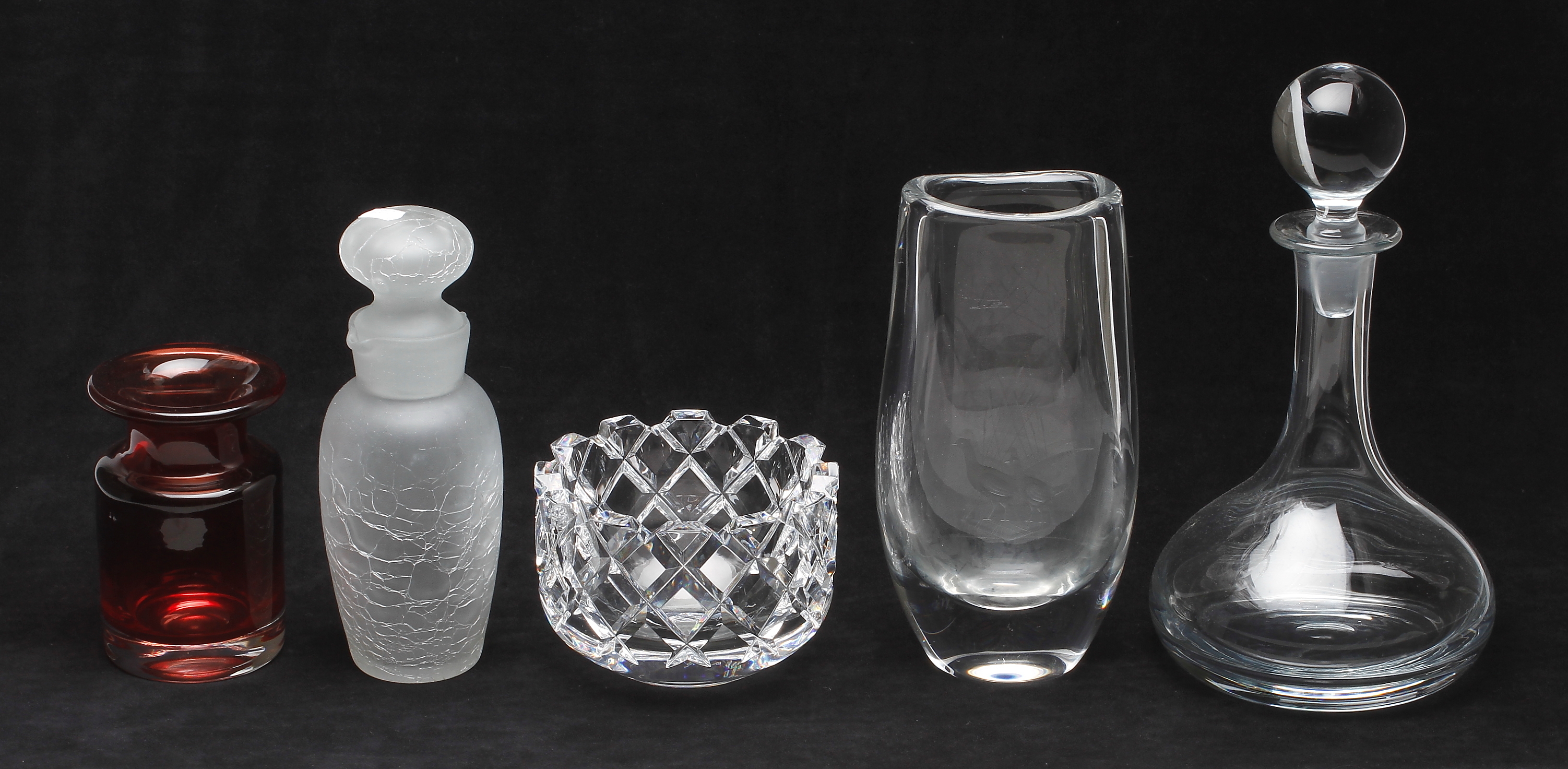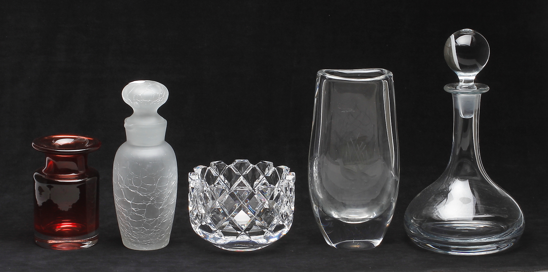 162317. OBJETOS DE VIDRIO, 5 partes, i.a. Orrefors.