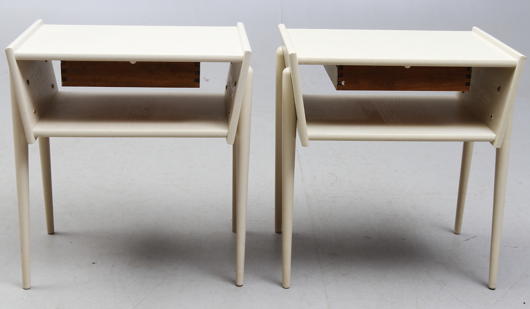 162700. MESA DE CAMA, pareja, teca, pintada de blanco, años 50.