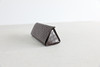 Piel marrón grabada con logo, forrado con fino mocca, botón a presión.