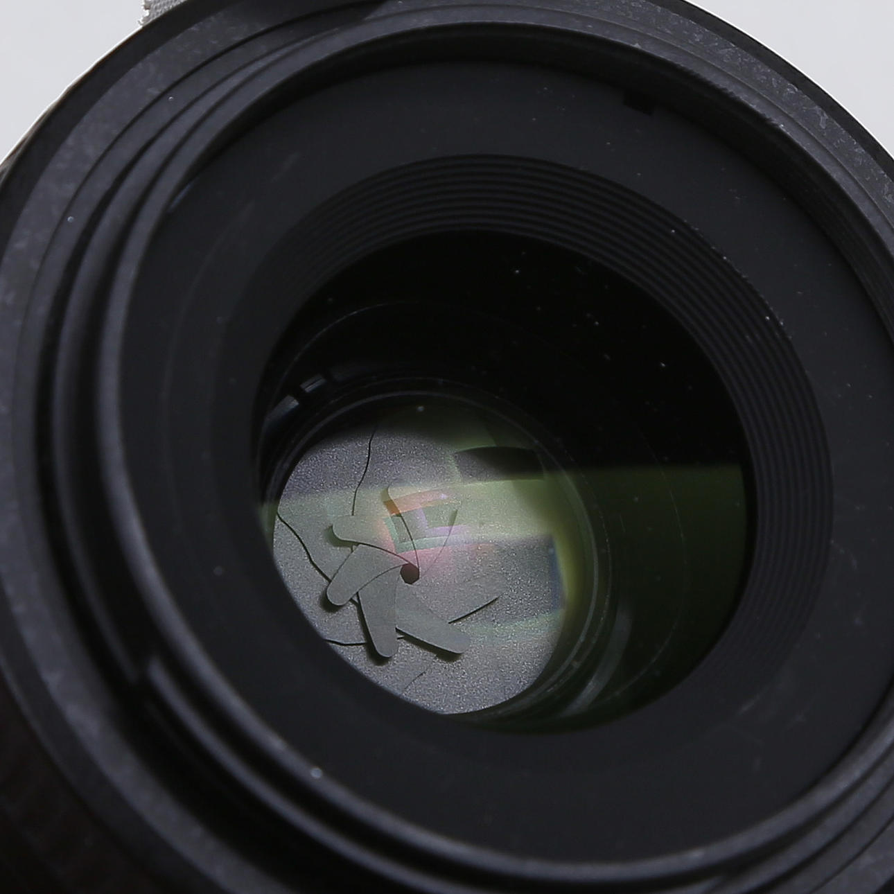 Acostado en bolsa con manual y lente.
