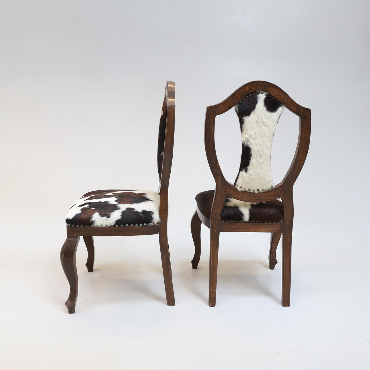 1656134. 2 SILLAS, madera/piel de vaca, década de 1900.