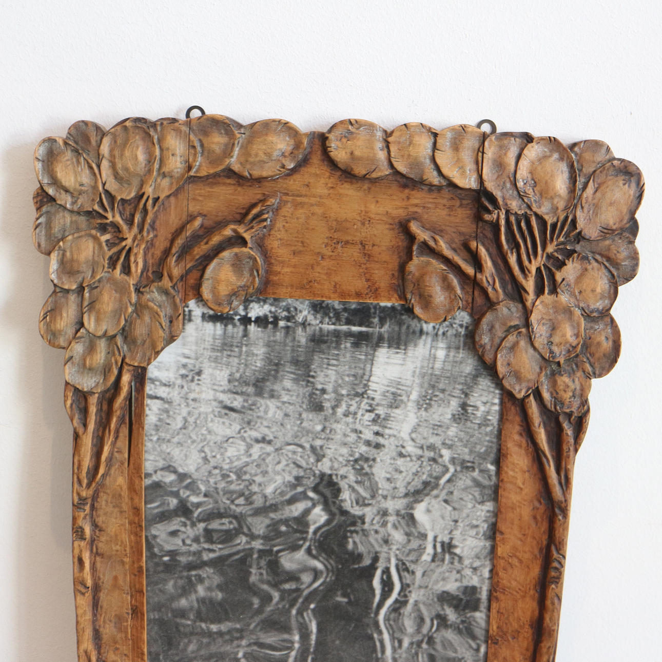 Marco Art Nouveau, madera de abedul, tallado a mano, dimensiones: 50 x 37 cm.