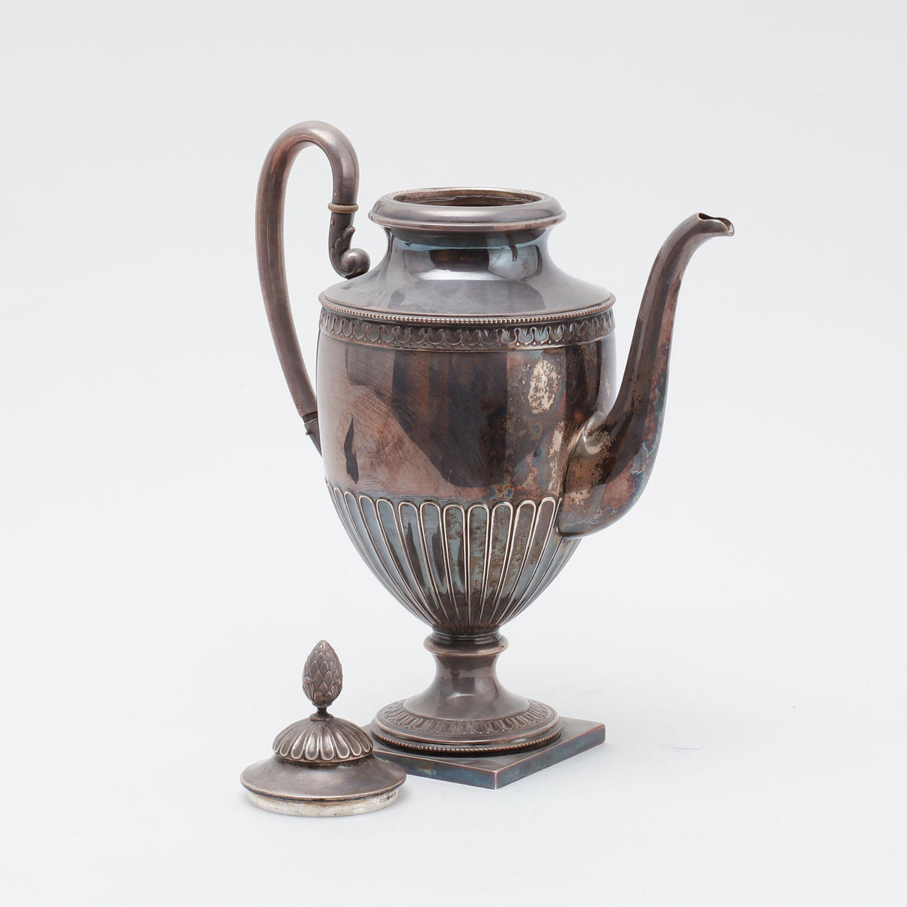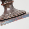 Decoración de follaje parcialmente redondeada. Vida cónica en un pie cuadrado. Altura 28 cm.
