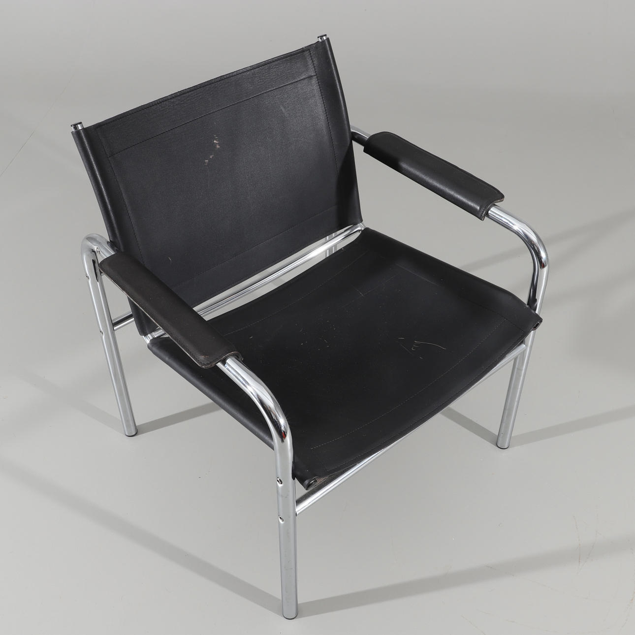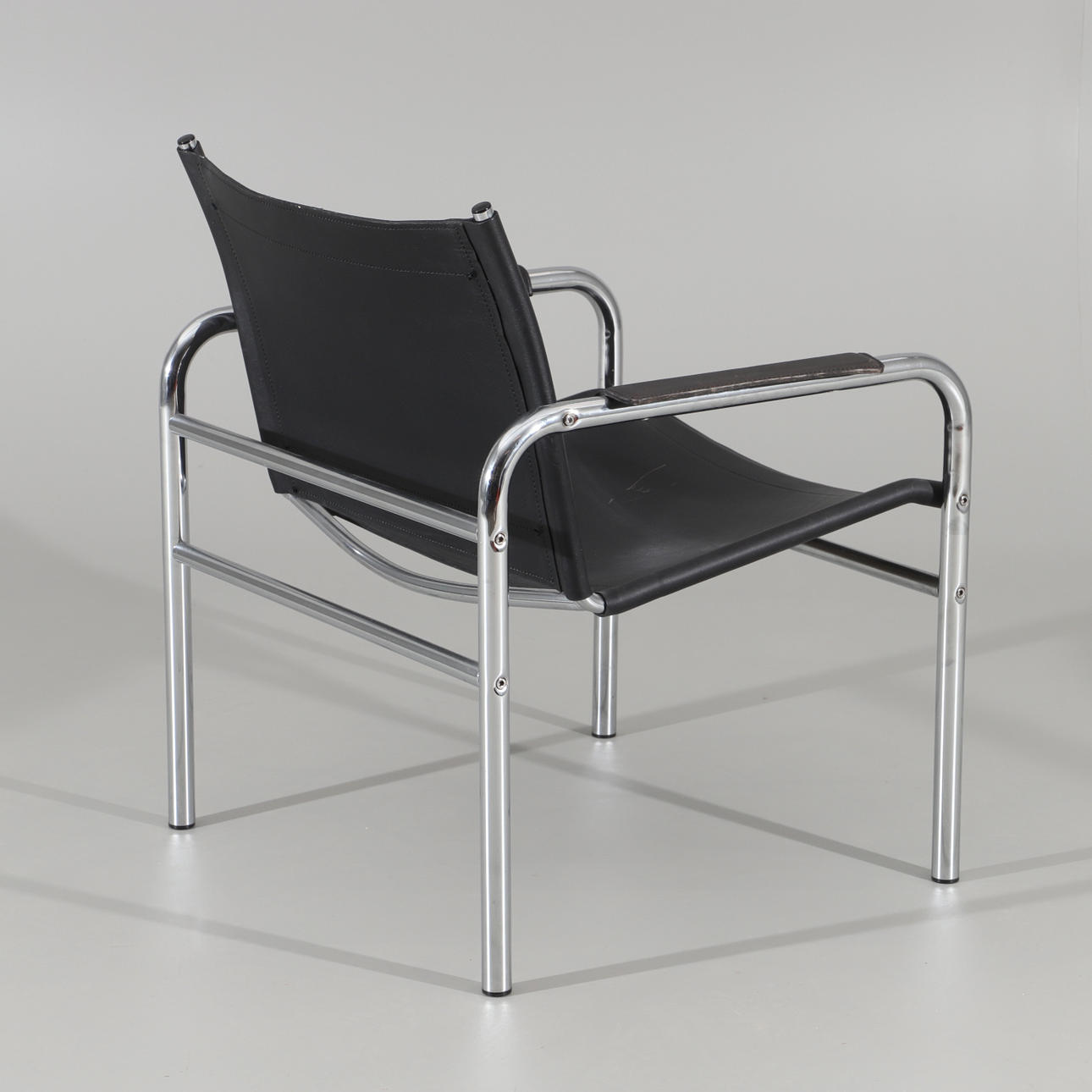 1715364. TORD BJORKLUND. Sillón, "Klinte", cuero negro con base cromada.