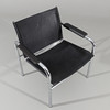 TORD BJORKLUND. Sillón, "Klinte", cuero negro con base cromada.