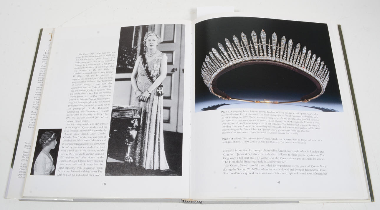 "Las tiaras siempre han inspirado una gran fascinación y las mujeres más hermosas e influyentes han sido pintadas, fotografiadas y admiradas mientras las usaban. Incluso en el siglo XXI todavía se usan y continúan inspirando un aplomo y una elegancia especiales. Este libro lujosamente ilustrado incluye nuevas fotografías de una variedad de tiaras reales junto con las de procedencia imperial francesa y rusa. A Geoffrey Munn se le ha otorgado acceso especial a los archivos fotográficos de muchos joyeros famosos, incluidos Cartier, Boucheron y Faberg, para su investigación. Otros fabricantes incluyen Castellani, Fouquet, Garrards, Giuliano, Lalique y Tiffany. Entre las piezas contemporáneas ilustradas se encuentran tiaras pertenecientes a Jamie Lee Curtis, Vivienne Westwood, Elton John y Madonna, realizadas por Slim Barratt, Galliano y Versace.".