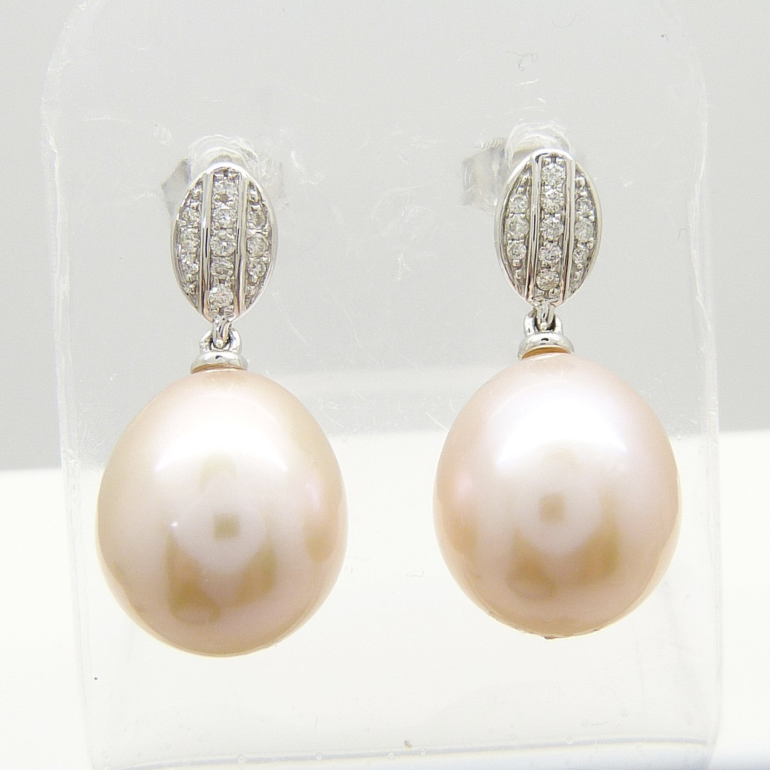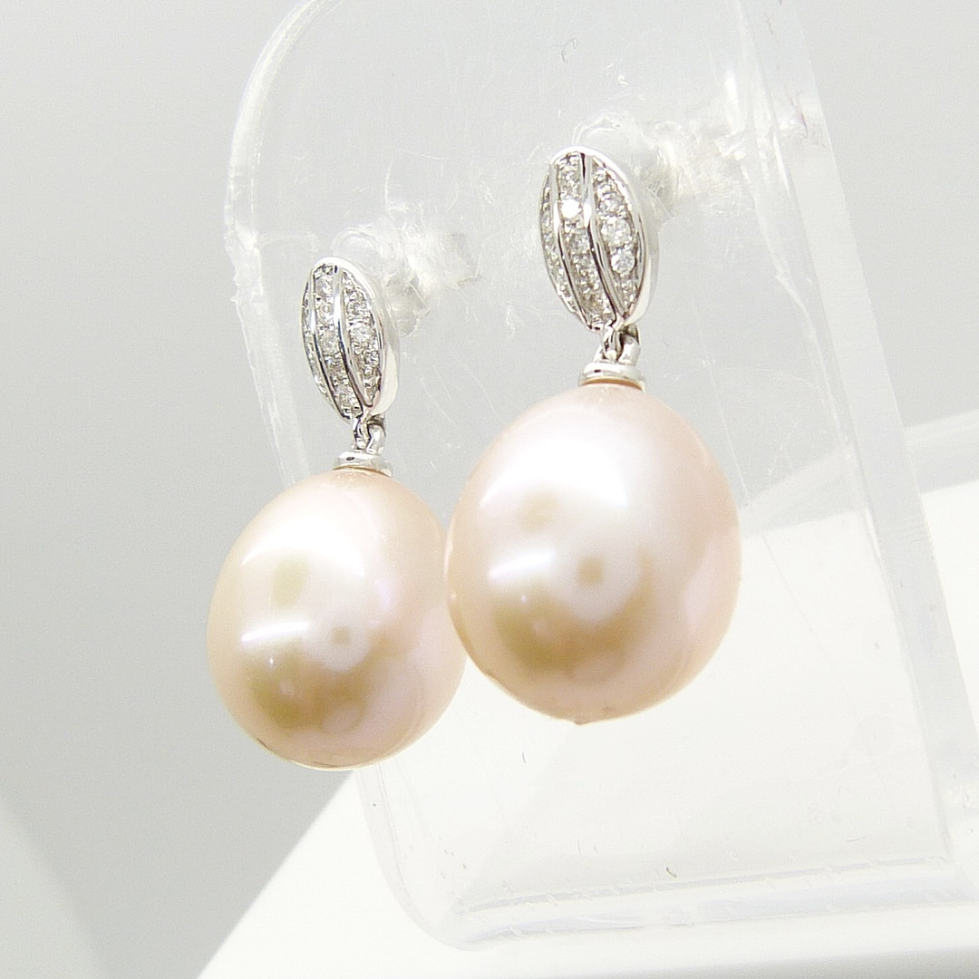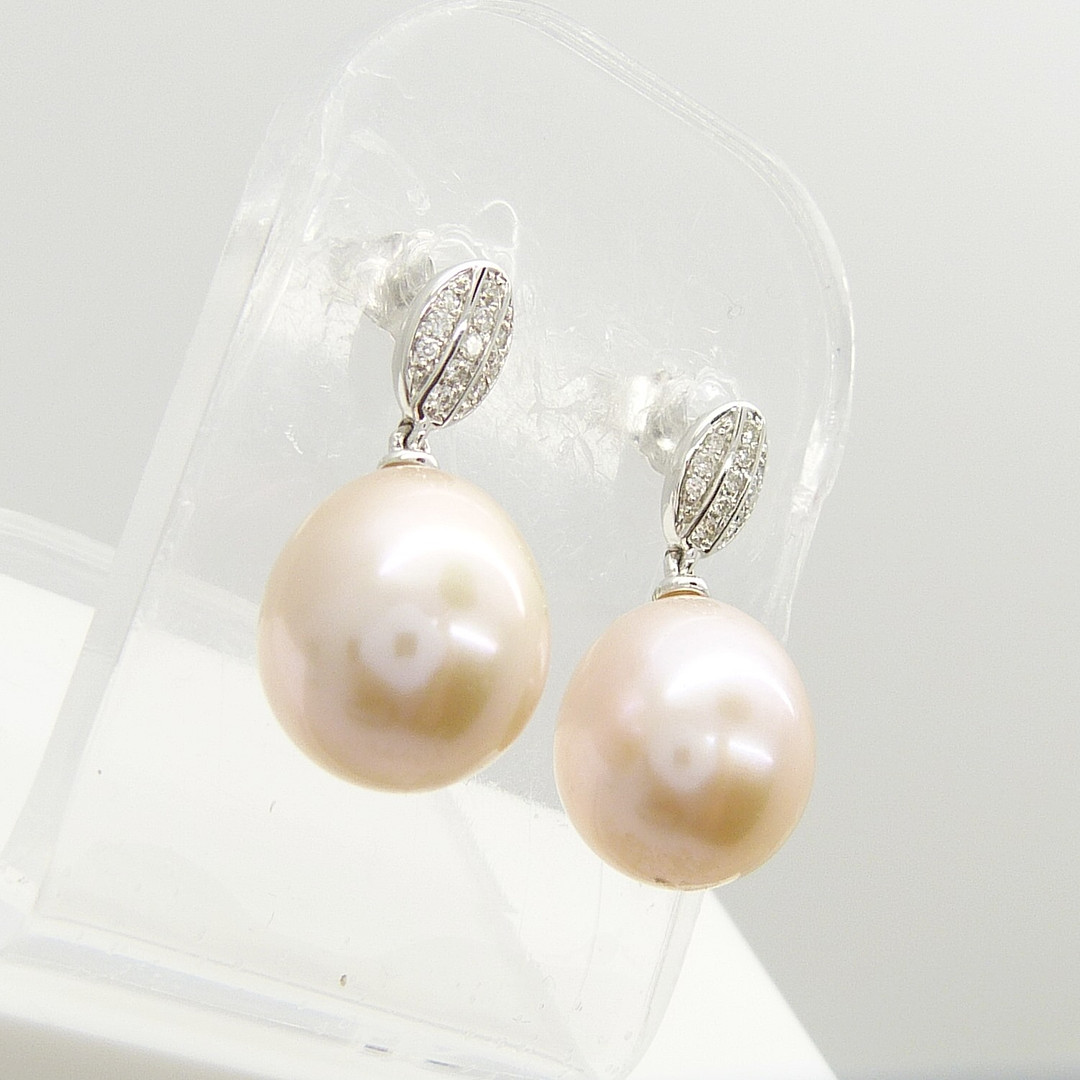 1741792. PENDIENTES DE DIAMANTE Y PERLAS DE melocotón.