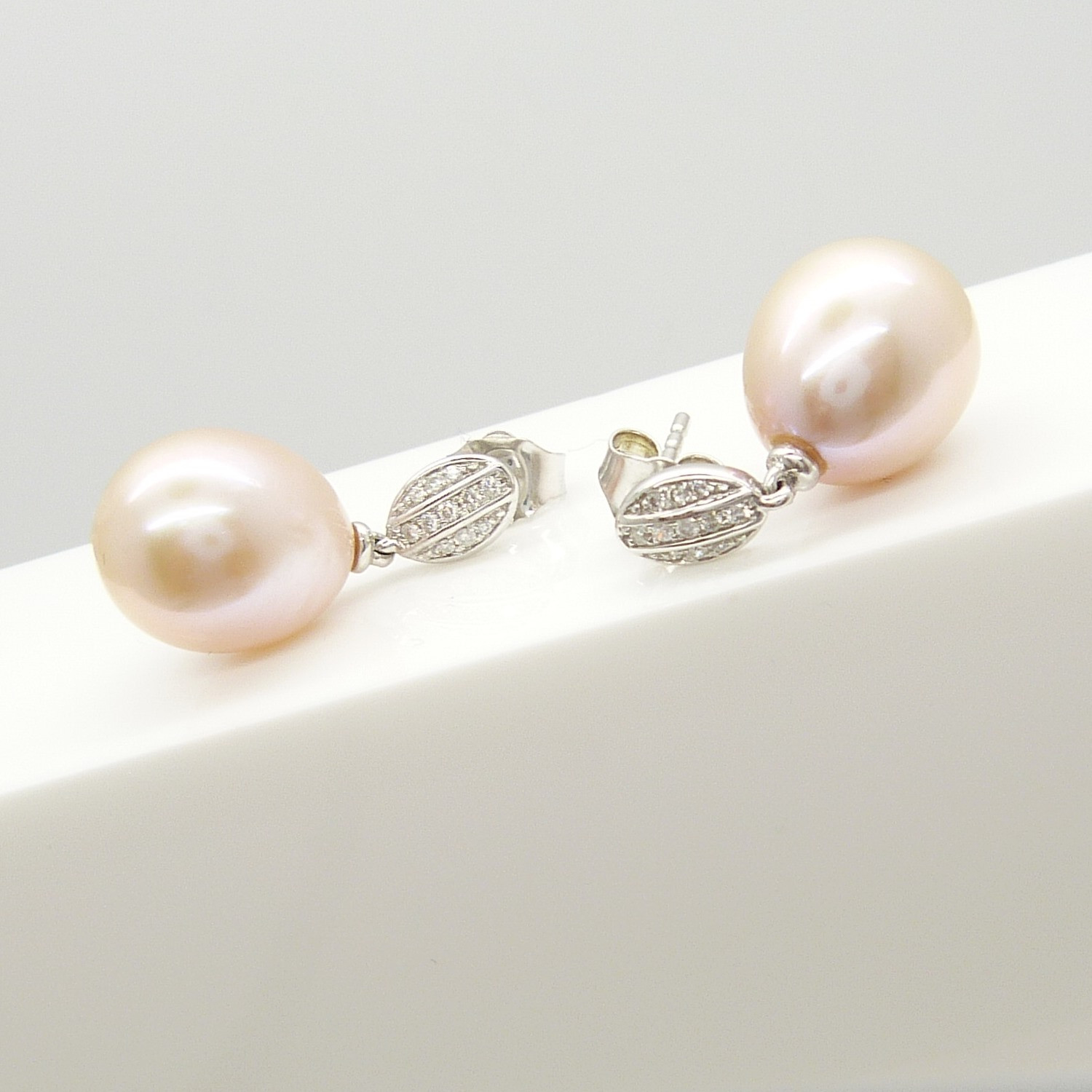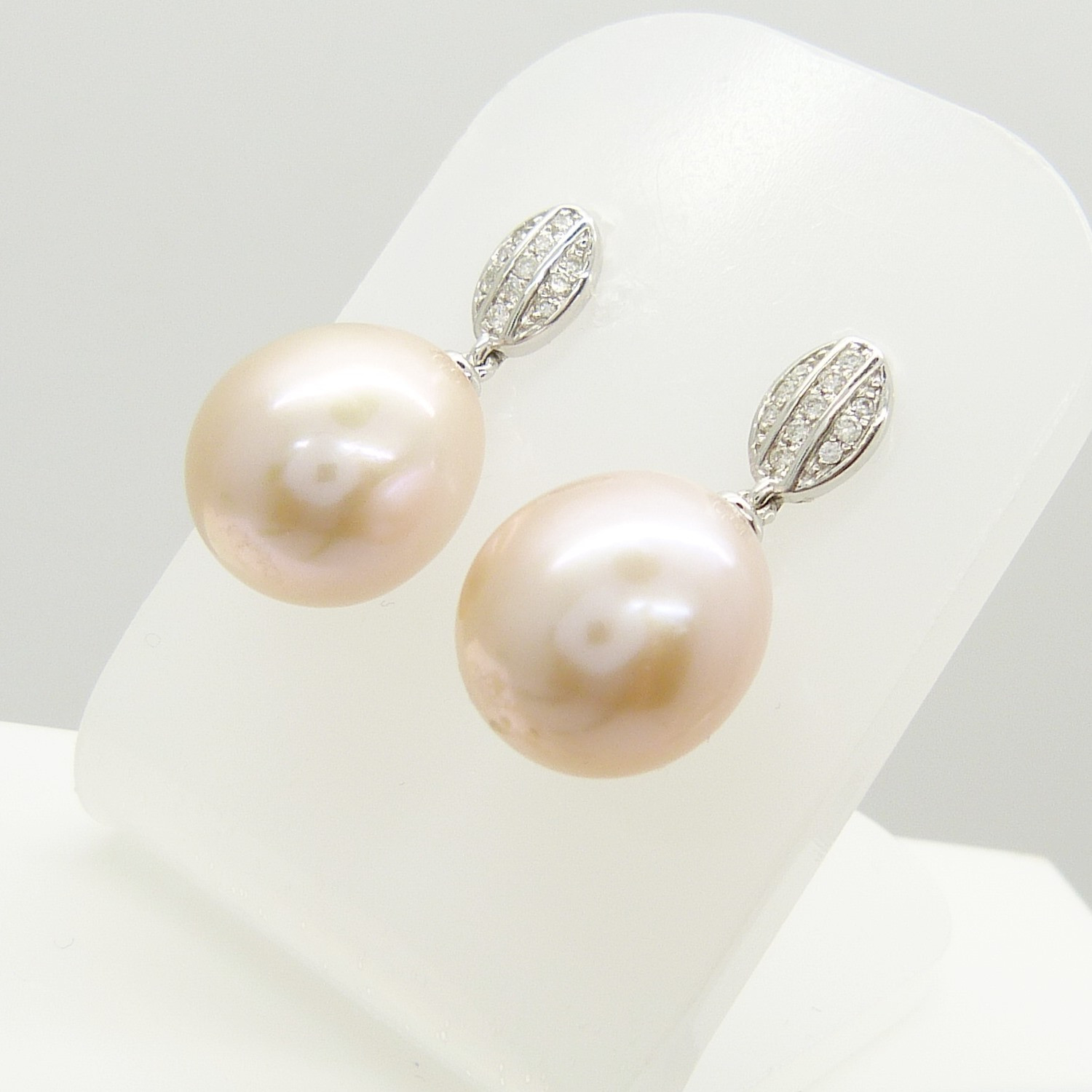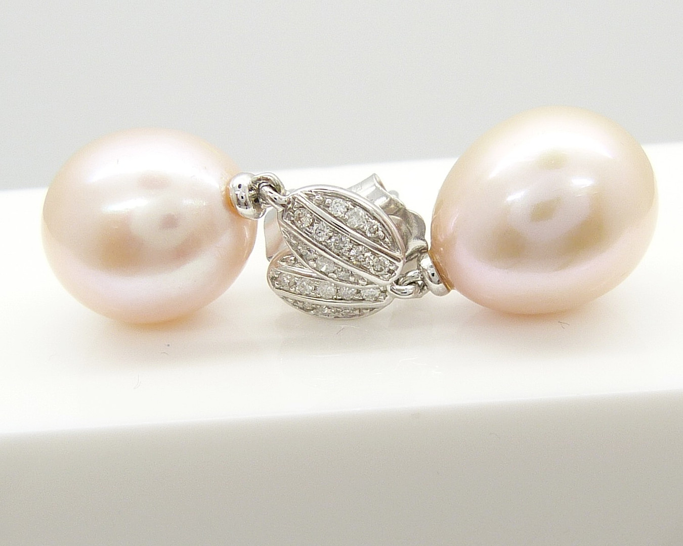 1741792. PENDIENTES DE DIAMANTE Y PERLAS DE melocotón.