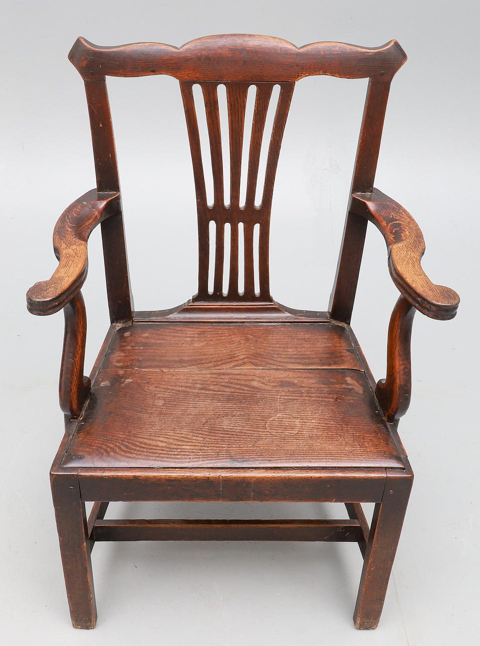 1748341. UNA SILLA GEORGE III ROBLE BRAZO ABIERTO CODO.