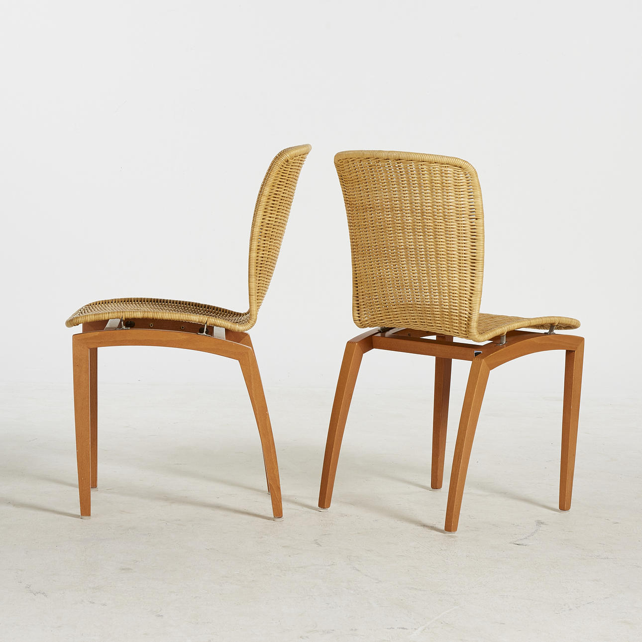 1765148. LIGNE ROSET, 6 sillas "libra", madera de peral y ratán.