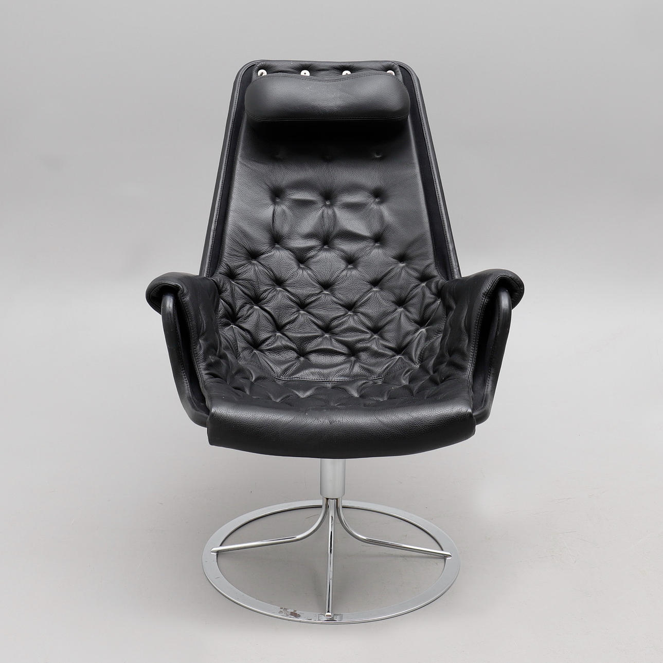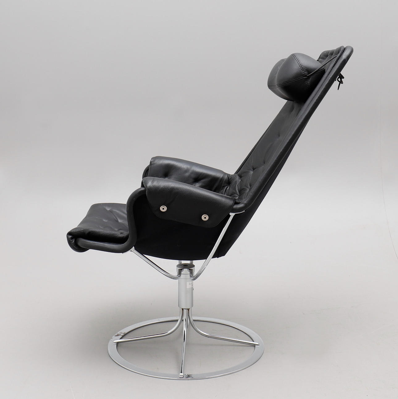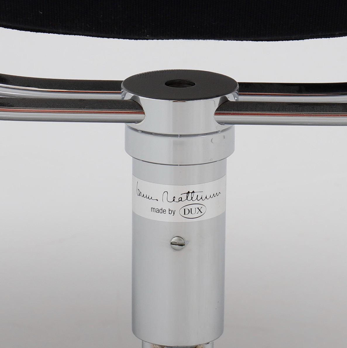 Dux, tapicería de cuero negro con patas cromadas. Altura del respaldo 97 cm aprox.