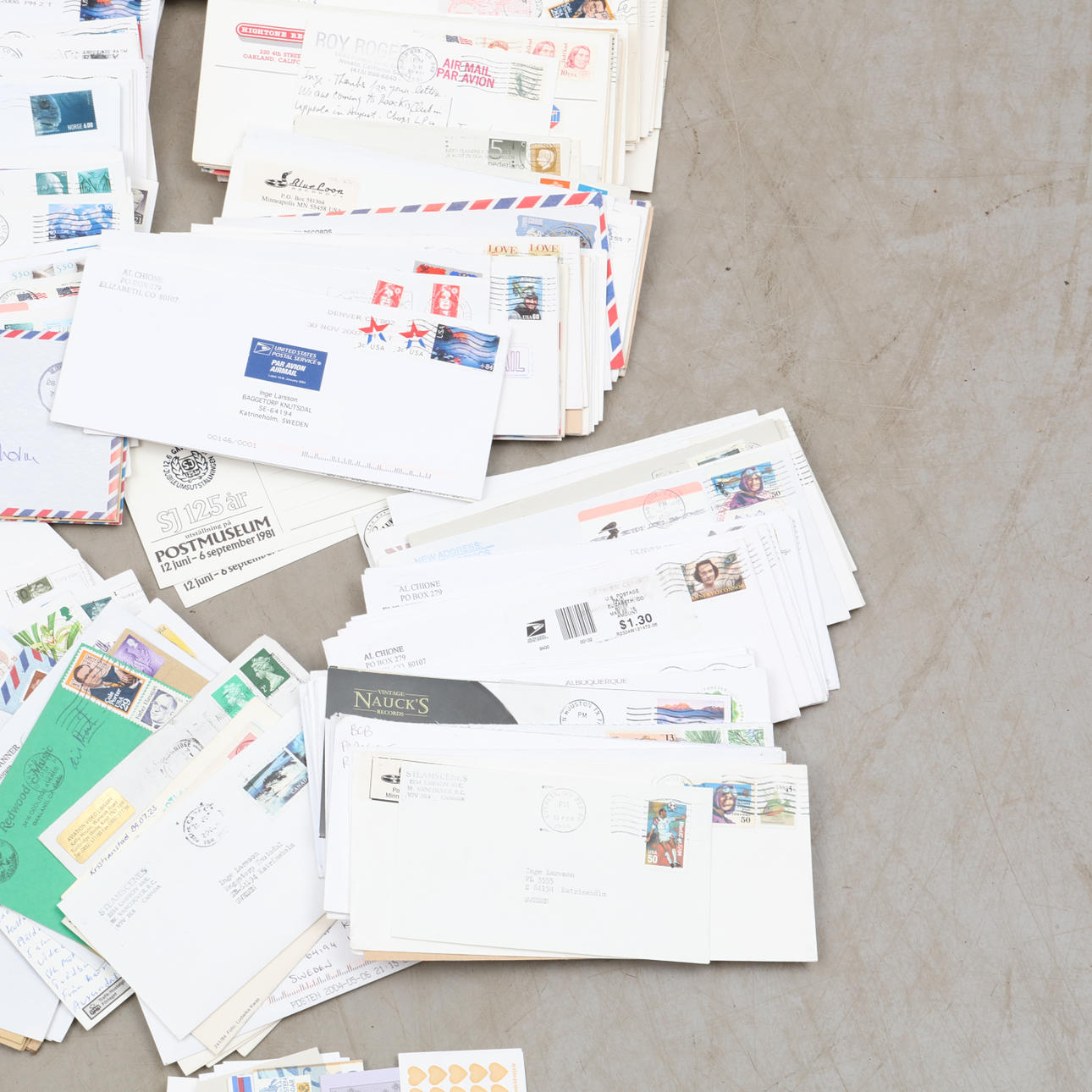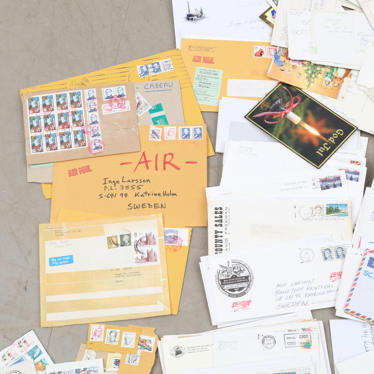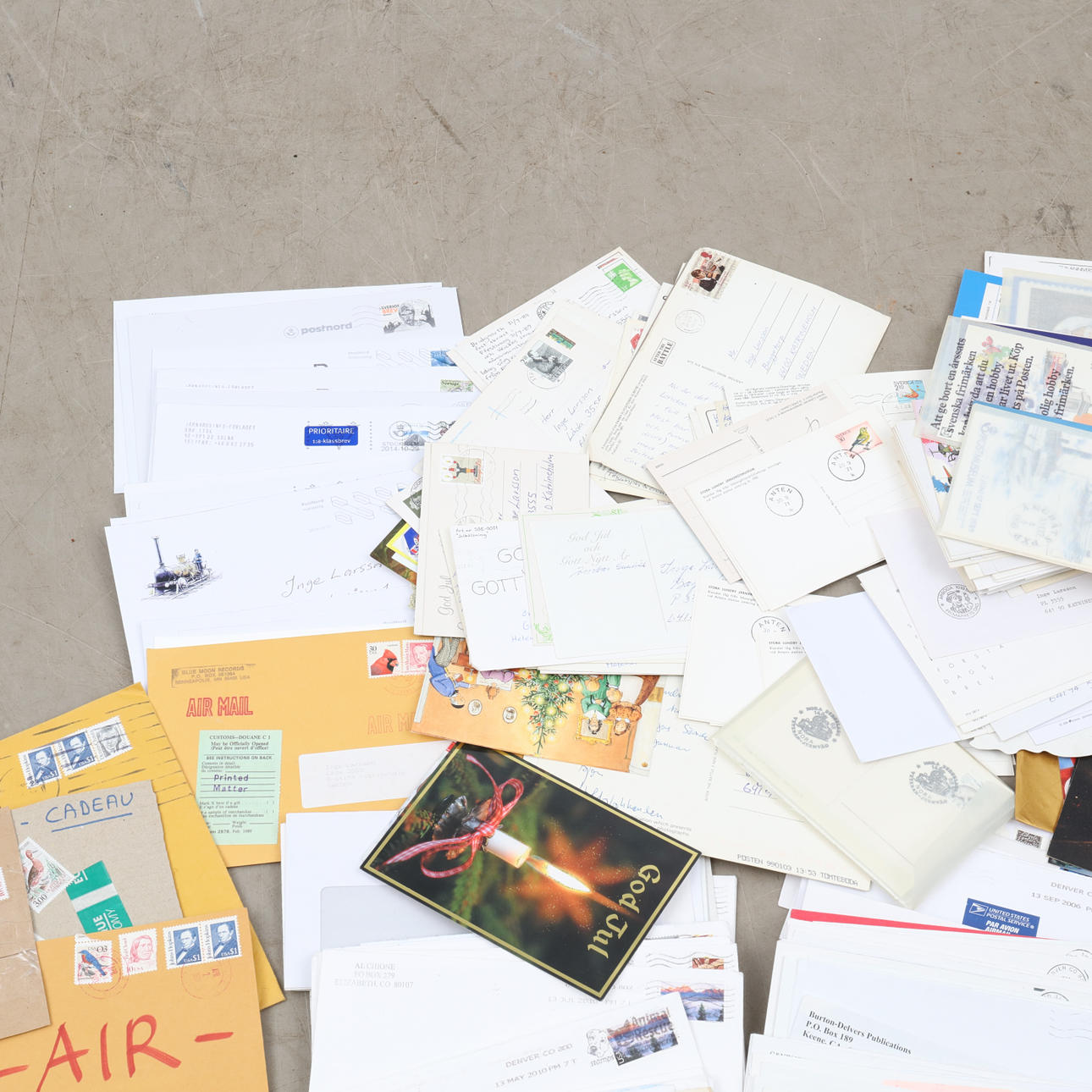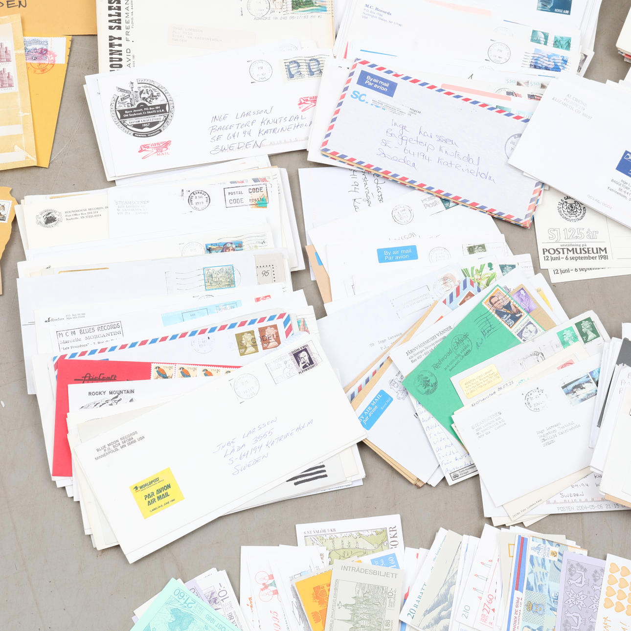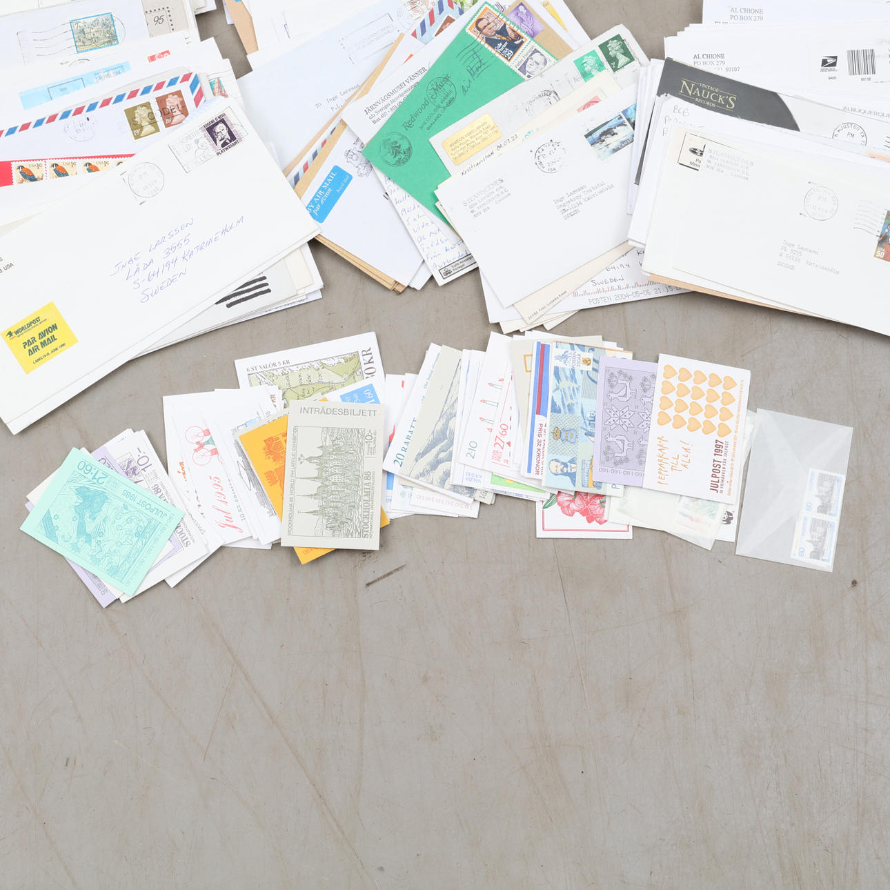 Postales y cartas escritas y postales con sellos, p. a. del Día del Sello y la Asociación de Filatelistas de Suecia 100 años, etc.