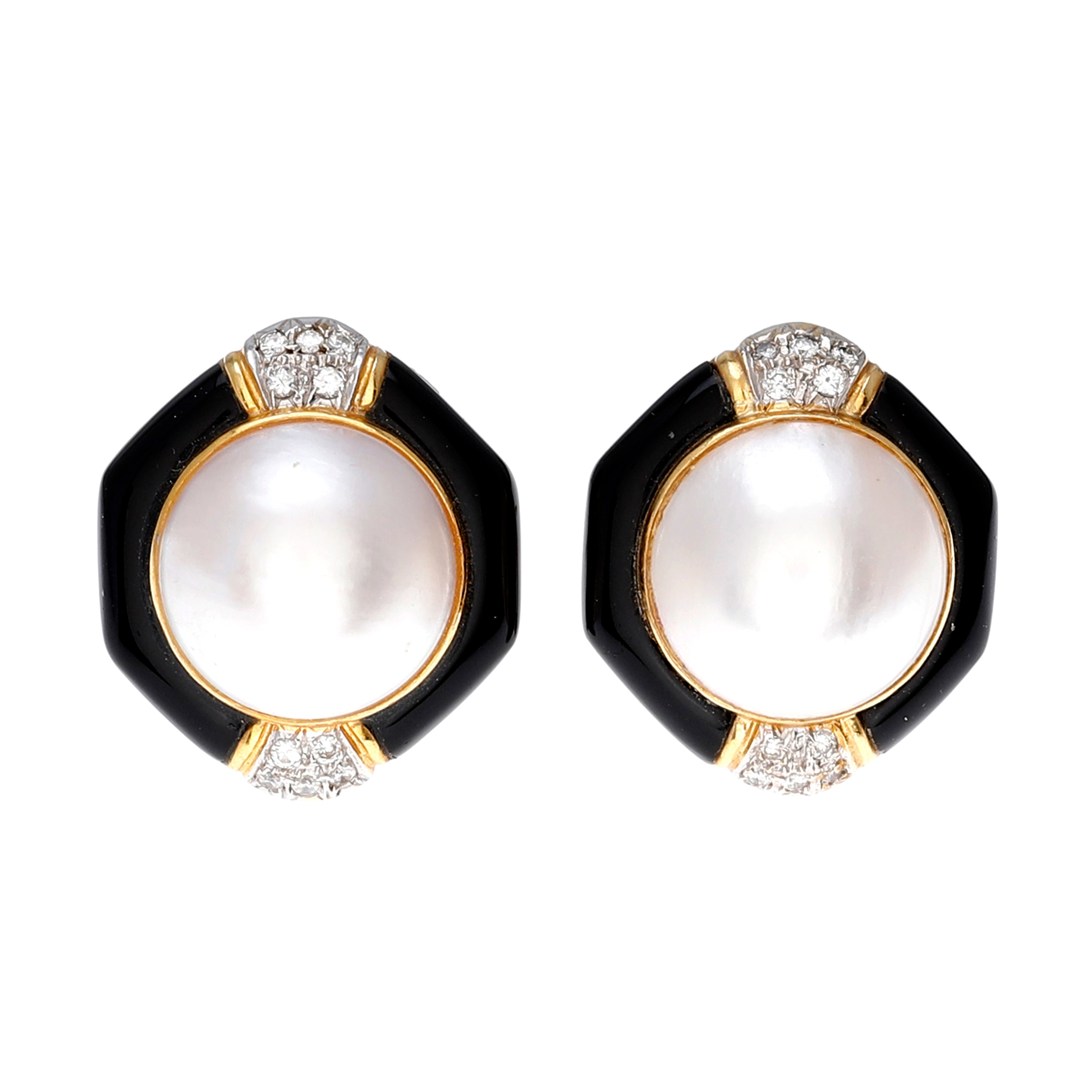 1774453. Pendientes de perlas mabé y diamantes.