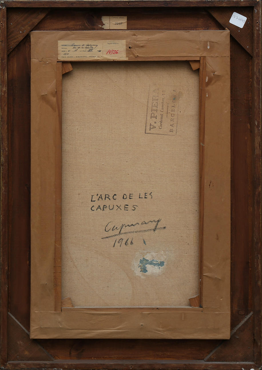 Firmado. En el reverso, firmado, localizado y fechado en 1966. En el bastidor, una etiqueta de la Sala Parés de 1966 lo titula
