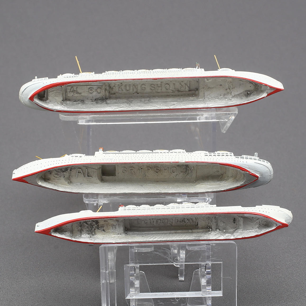 Incluyendo SS Mariefred de Eskader Estocolmo, MS Kungsholm, Gripsholm, Drottningholm y Sveadrott. Longitud aproximada 10-14,5 cm.