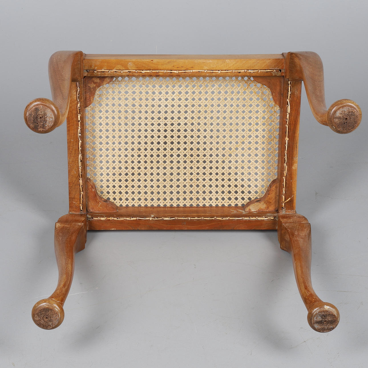 La estructura de haya levantada sobre cuatro patas cabriolé y pata de cabra, de 46 cm de alto x 49 cm de ancho x 39 cm de profundidad.